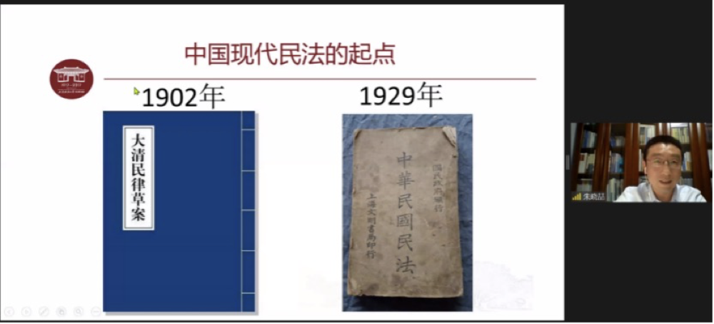 首先,朱晓喆教授以“民法典的立法概况与物权编”为主题,通过对中国现代民法的起点的探寻、对建国后民法典多次起草历程的梳理、对现行民法典结构体例的分析,回顾了中国民法典的百年历程。随后,朱晓喆教授重点论述了物权编中的若干制度创新,包括居住权创设、担保制度的统一化、超级优先权的设立。朱教授指出,以上制度体现了民法典对民众现实需求的回应,具有积极价值。