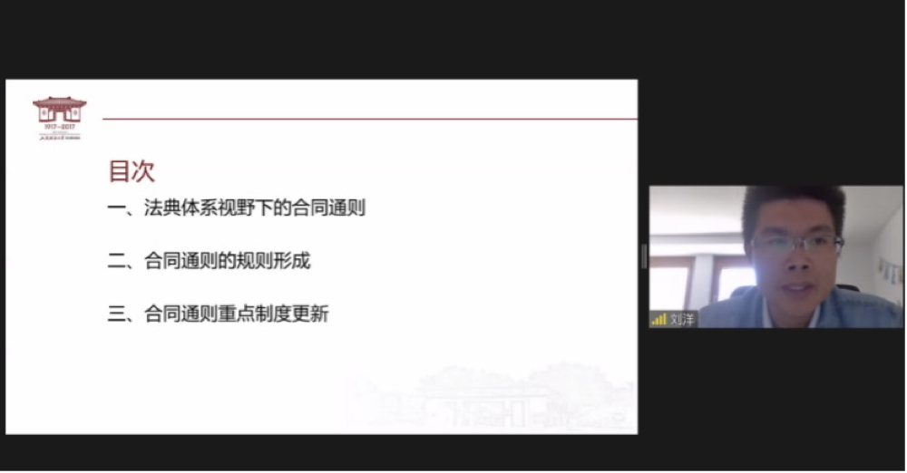 随后,刘洋讲师以“合同通则中的制度变革”为主题,对合同通则的体系位置与功能、规则形成与重点制度变动等问题作出了详尽报告。刘老师指出,在法典体系视野下,合同通则应当担负起债法总则的功能;从内容上看,其承袭了既有立法、吸纳了学说共识、吸收了司法实践经验,相较而言变动幅度颇大。之后,刘老师对包括要约生效时间、悬赏广告制度、合同成立时间、情势变更制度、债权让与规则等方面的制度变动作出了探讨,对制度意义及其构成要件作了分析。