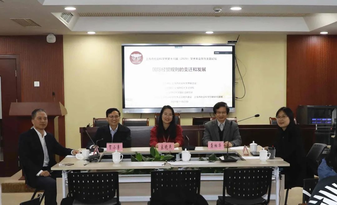 2020年11月22日下午,由上海市社会科学界联合会主办,由上海财经大学法学院、上海财经大学国际法研究所、“国际经贸规则中国特色哲学社会科学学术话语体系建设”上海市社会科学创新研究基地联合承办的上海市社会科学界第十八届(2020)学术年会系列主题论坛“国际经贸规则的变迁和发展”研讨会成功举办,会议采取线上与线下相结合的方式举行。来自中国人民大学、中国政法大学、对外经贸大学、武汉大学、厦门大学、复旦大学、华东政法大学、上海对外经贸大学、上海财经大学等高校的专家学者参加了本次会议。