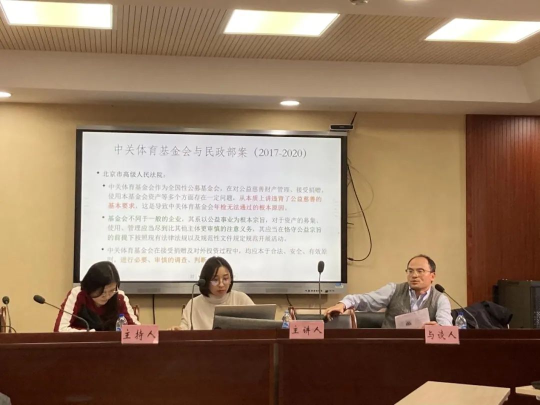潘晓老师梳理完案件的整个过程后,对本案进行了总结,基金会不同于一般的企业,其系以公益事业为根本宗旨,对于资产的募集、使用、管理应当尽到比其他主体更审慎的注意义务,其应当在恪守公益宗旨的前提下按照现有法律法规以及规范性文件规定规范开展活动。中关体育基金会在接受捐赠及对外投资过程中,均应本于合法、安全、有效原则,进行必要、审慎的调查、判断。最后,樊健老师和吴文芳老师就潘晓老师讲解的案例,提出了许多自己的看法、发表了自己的观点,同时也发现了界定中所存在的许多问题,同学们对此进行了积极的思考和讨论,讲座在热烈的掌声中圆满结束。