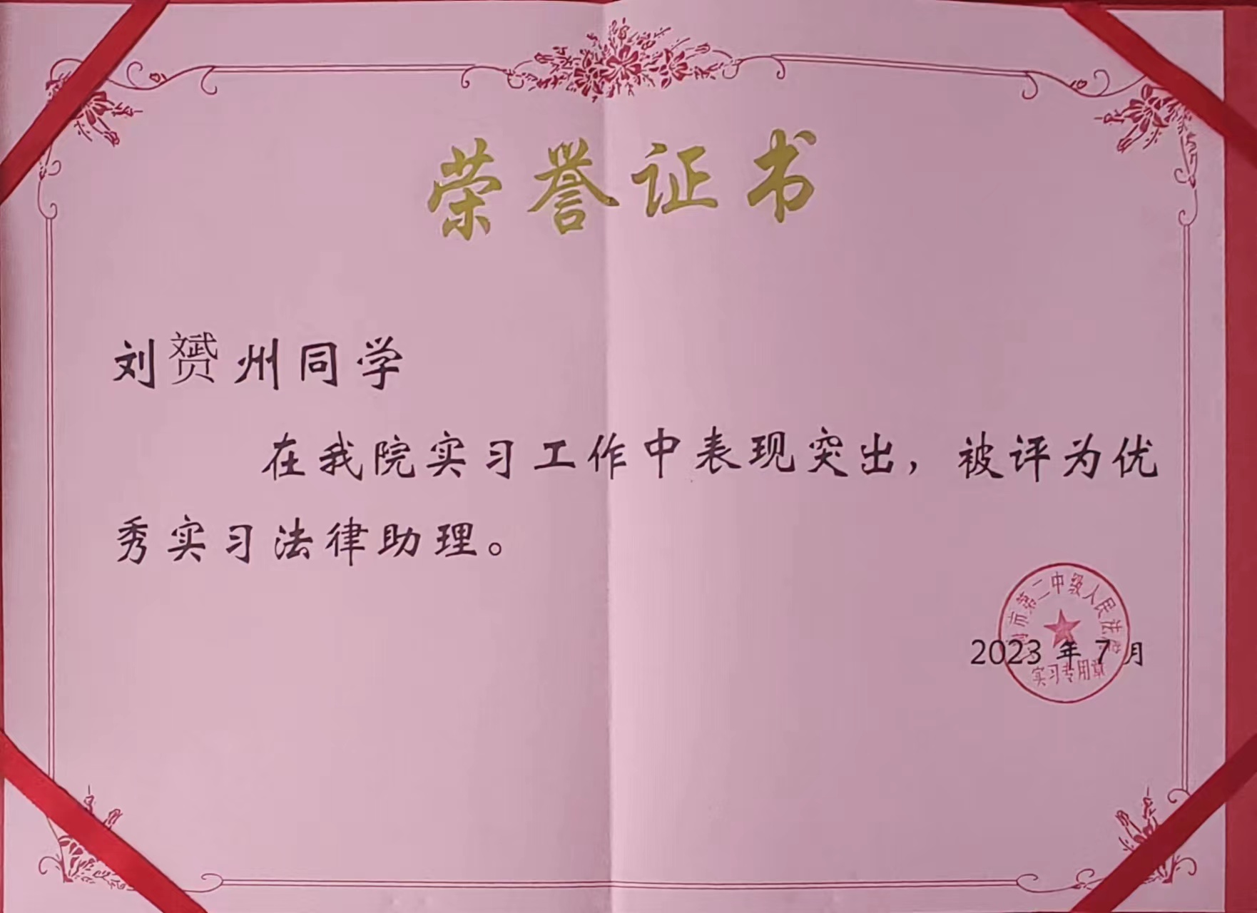 2023年暑期,上海市第二中级人民法院第14期实习法律助理项目,顺利落下帷幕。本次实习项目汇聚了上海财经大学、复旦大学、华东政法大学、上海交通大学等沪上十所高校的45名学子。在实习项目总结表彰大会上,民事审判庭专职党务干部杜鹏法官及执行局专职党务干部吴琛法官为各庭(部门)的荣获优秀实习法律助理的同学颁发奖状,并发表精彩的讲话。法学院的研究生刘赟州同学荣获“优秀实习法律助理”。