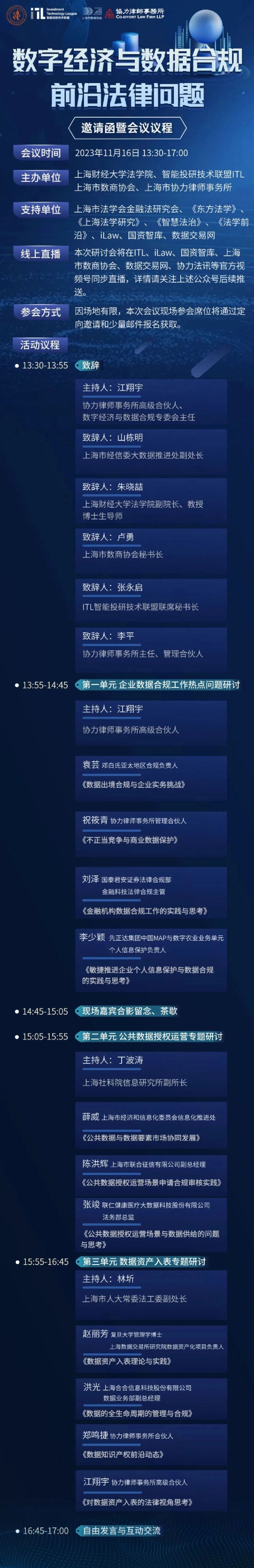 数字经济与数据合规前沿法律问题研讨会会议议程