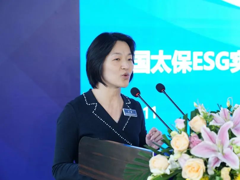 中国太平洋保险(集团)股份有限公司战略研究中心(ESG办公室)副总经理汪倩分享了“中国太保ESG实践”。她指出,当前ESG成为全球和金融行业的重要发展方向。《绿色金融指引》要求银行保险机构从战略高度推进绿色金融,将ESG要求纳入管理流程和全面风险管理体系。随后,她分别从环境、社会、治理三个方面,依次介绍了太保在实践中对于ESG的探索与追求。从环境角度,阐述了中国太保在ESG治理架构、管理体系、绿色保险、绿色投资、绿色运营等具体应用;从社会角度,服务国家战略能级不断提升,优化产品服务供给;最终从治理角度加强ESG披露管理能力与公司反腐建设。