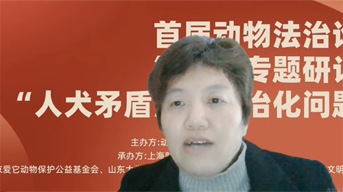 中南财经政法大学教授钱叶芳代表主办方对与会专家学者表示感谢和欢迎,并以《基层治理中的犬类保护和管理失衡问题及对策建议》为题,论述了人犬矛盾与基层治理之间的关系,分析人犬矛盾普遍化的养犬管理地方立法诱因,并提出保护和管理并重的双向治理对策建议,依靠自上而下、自下而上的双向治理方能解决人犬矛盾,打开法治、德治、自治相融合的基层社会人犬矛盾乃至整个人与动物矛盾治理新格局,实现新时代人与动物和谐相处的全民愿望。