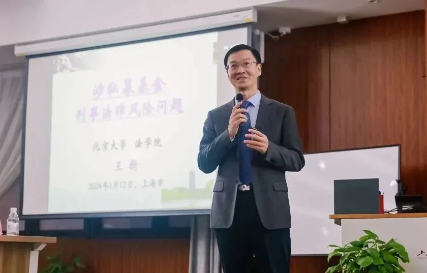 首先,由北京大学法学院王新教授就《涉私募基金刑事法律风险问题》主题作主题发言。王新教授先为我们介绍了私募基金发展态势,指出其涉刑的一大原因就是真私募与“伪私募”并存的问题,强调在打击伪私募基金型的非法集资犯罪的同时也要坚持“防患于未然”,凸显刑事合规在刑事风险方面的重要作用。然后从非吸罪的“四性”特征入手,分析了如何探求刑事政策的“出罪口”。