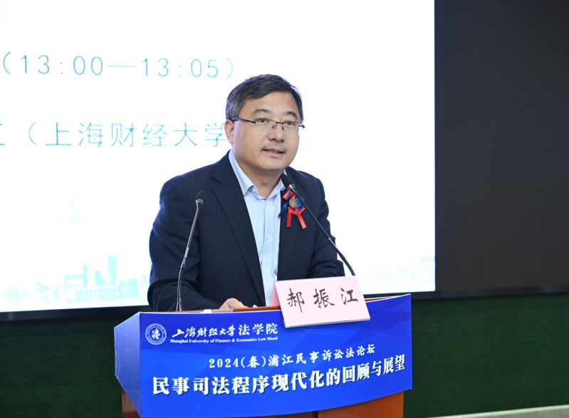上海财经大学郝振江教授进行了开场致辞。他对参加论坛的各位专家学者们表示了诚挚欢迎。首先,他指出,浦江民诉法论坛源于浦江民诉法沙龙,目前已经成为上海乃至于长三角地区民诉法学者之间学术交流的重要平台。随后,他谈及了为什么要以”民事司法程序现代化的回顾与展望”作为论坛的主题。郝教授认为,在中国式现代化背景下,民事司法程序同样面临现代化的问题。诉源治理、线上审判等这些新型问题已对传统民事司法程序理论提出了重大挑战,理论界和实务界的分歧也在愈加扩大。因此,回顾与展望我国民事司法程序现代化的进程有助于正本清源。