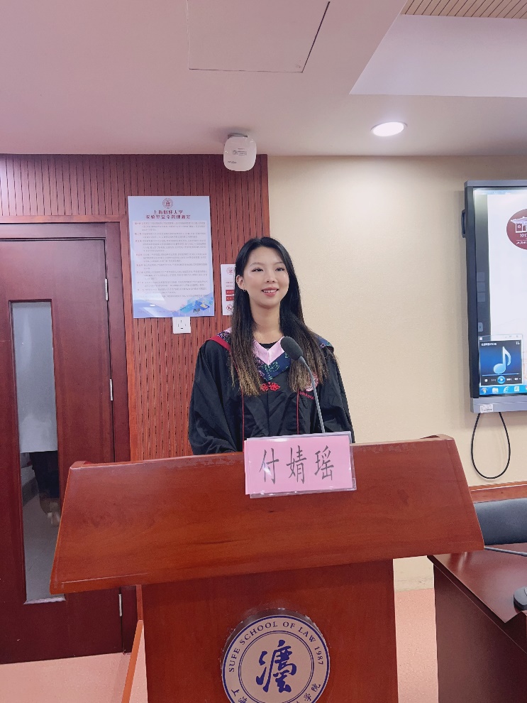 2020级英美法证书班付婧瑶同学作为学生代表发言。付婧瑶同学先回忆了大学四年时光中的苦与乐,并代表同学们对各位老师表达了衷心的感谢。大学赋予了同学们更多的选择自由,这时候,连点成线的生活中,点就并非是单纯的事件,而是同学们主观能动性下的自我选择。她鼓励同学们主动选择,找到方向,立下锚点,再通过奋斗将锚点之间连接成线,形成由自己掌控的线性人生。