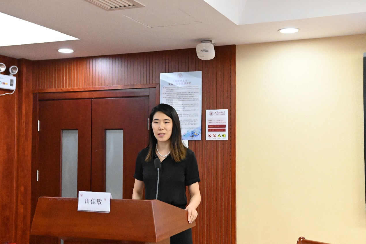 在第二单元交流发言阶段,法学院田佳敏老师首先向大家介绍了学院的法学教育与课程建设,并结合自身近期的招生经历,认为学院的生源是优秀的。其次,田老师介绍了学院的实习、模拟法庭等实践机会,指出与实务进行结合的重要性与必要性并希望实务界能继续支持模拟法庭的建设。