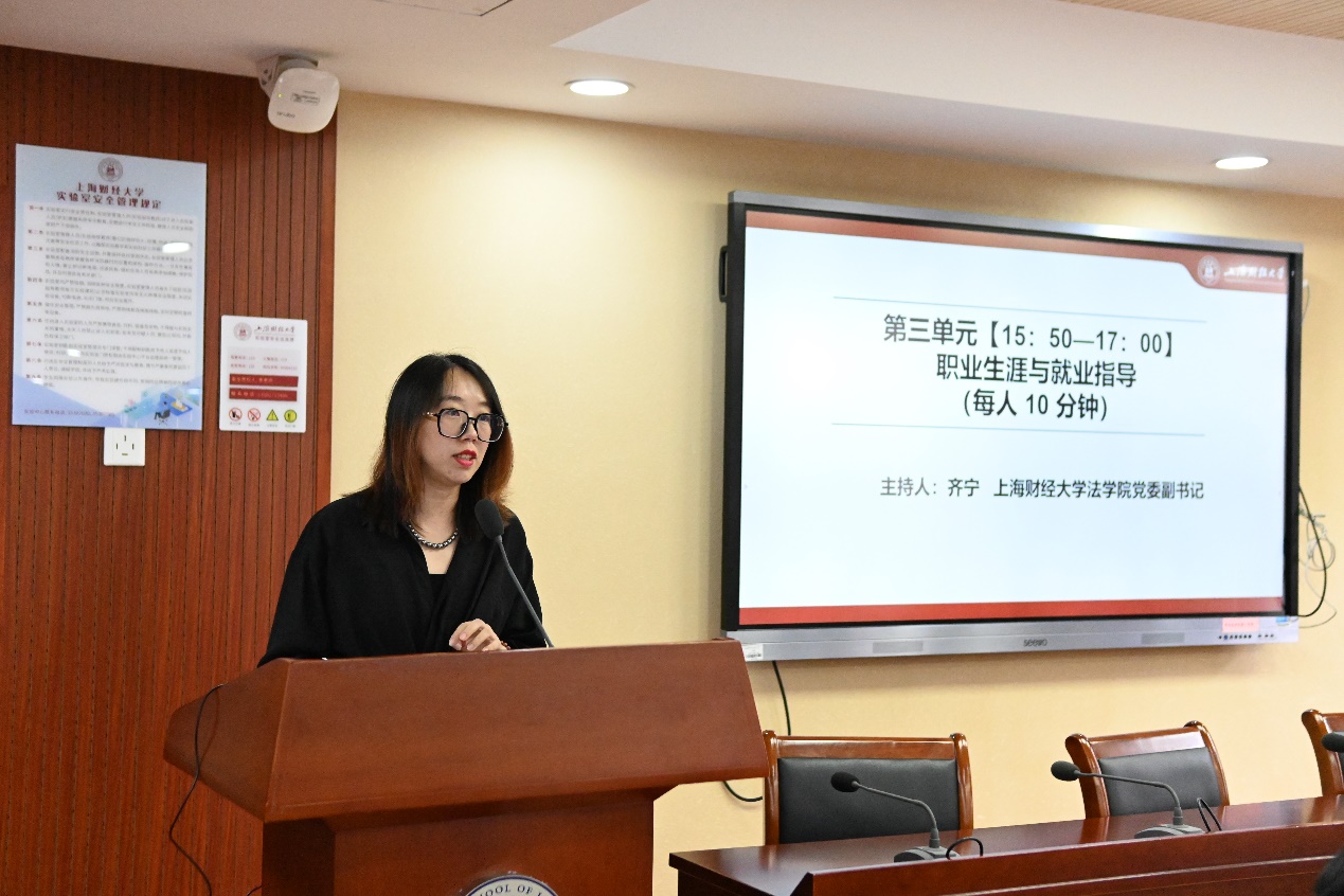 第三环节以“职业分享与就业指导”主题,由法学院党委副书记齐宁老师主持。