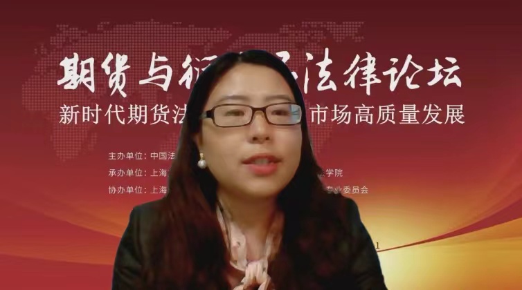 主旨演讲环节,华东政法大学唐波教授以“期货立法相关问题思考”为主题进行演讲。唐教授结合了《期货法》(草案)的二审稿分享了她关于期货立法的一些思考。她认为,我国期货法治建设基本是朝着市场化、创新化、国际化、规范化这样正确的方向在前进的,而期货立法的深推进应当坚持强化风险防范、服务实体经济和国家战略、坚持创新发展、推进对外开放、加强有效监管。具体而言,在坚持创新发展方面,唐教授认为应当进一步拓宽期货交易所业务范围,并建议从包容性及扩展弹性角度定义套期保值。在坚持有效监管方面,其从其他衍生品定义、监管的集中统一、业务规则、强制减仓等方面提出相应立法完善意见。坚持对外开放方面,唐教授认为应当加强境外期货经营机构的监管,并建议出台数据出境细则。