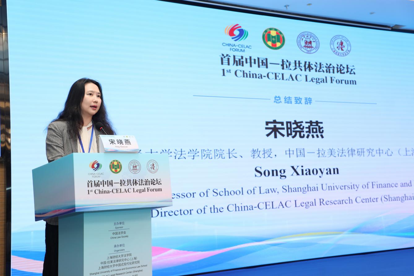 上海财经大学法学院院长、教授,中国-拉美法律研究中心(上海)主任宋晓燕在总结致辞中表达了对与会嘉宾和学者的感谢,并表示此次论坛为中拉法治合作注入了新的智慧与活力。中国与拉美国家在数字经济、金融法治、经贸法治、气候法治等领域取得的显著成果,奠定了坚实的合作基础。上海财经大学始终走在服务国家战略和推动国际合作的前列,未来将继续与中拉各国的学术机构、法律界和政府部门保持紧密合作,共同推动法治进步。