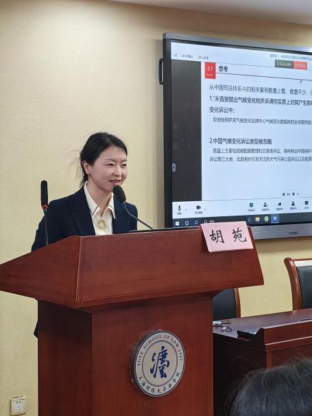 会议上半场聚焦于碳交易政策法规,由中华全国律协环境资源与能源法专业委员会副主任、上海律协环境资源与能源专业委员会主任、上海市金茂律师事务所合伙人吴荣良律师主持。在会议上半场,上海市减污降碳管理运行技术中心碳排放科工程师蔡澄霖对《双碳背景下减污降碳协同相关政策》进行了深入解读;上海环境能源交易所法律监管部部长黄燕就《碳排放权交易与政策》进行了详细阐述。上海财经大学法学院博士生导师胡苑教授对《本土化结构下的中国气候变化诉讼机制探索》进行了汇报。她基于数据分析的实证考察,比较了中外气候变化诉讼的实践差异。她从我国气候变化诉讼情况有别于域外这一视角出发,提出在多学科交叉、气候变化研究困难的现状下,是否应当模仿域外的气候变化诉讼制度之问。