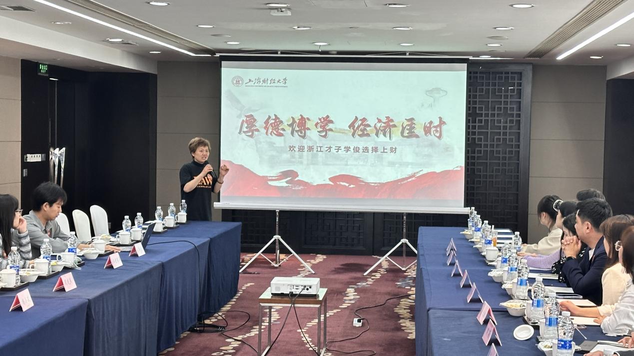 罗山鸿书记主持招生宣讲环节,全面讲述了上海财经大学在学科建设领域的雄厚根基、人才培养模式的创新突破以及学生职业发展支持体系的完善架构。一系列详实可靠的数据资料,多维度、立体化地展示浙江地区招生政策,使校友们深切感知到母校对浙江招生工作的高度关切与倾力投入。