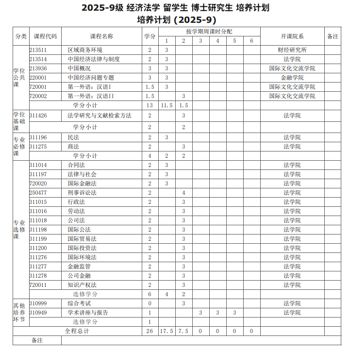 2025-9 经济法学 留学生 博士研究生 培养计划