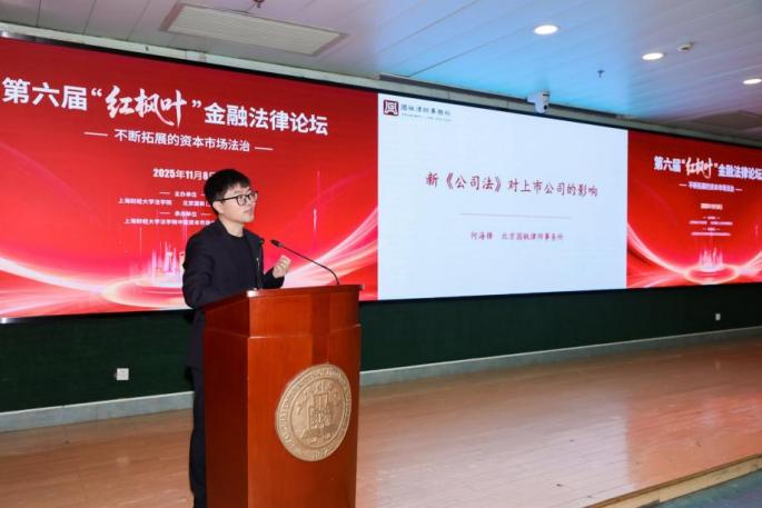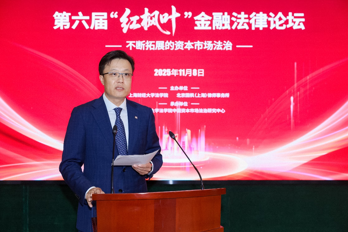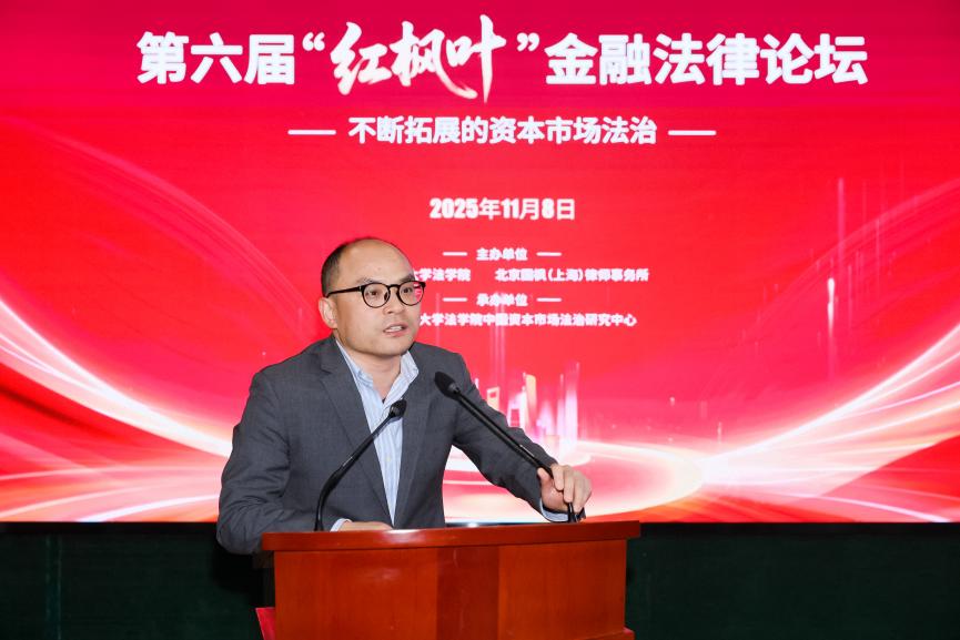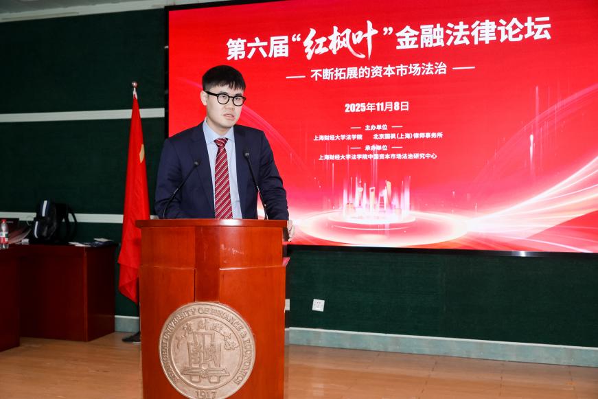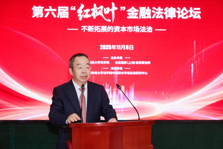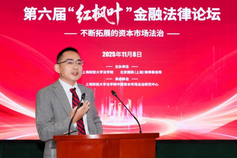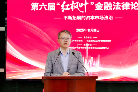 2025年11月8日,由上海财经大学法学院、北京国枫(上海)律师事务所主办,上海财经大学法学院中国资本市场法治研究中心承办的第六届“红枫叶”金融法律论坛在上海财经大学行政楼报告厅顺利举行。