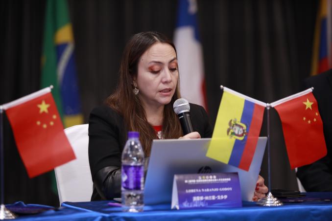 墨西哥代表清・鹤丸・阿尔韦鲁先生率先发言,系统分享墨西哥自贸协定网络建设经验与贸易法律实践。他指出,墨西哥目前已与全球多个国家签署自贸协定,形成覆盖拉美、亚洲、欧洲的贸易合作网络,在贸易规则执行中注重跨境纠纷的高效处理,通过明确的法律流程保障企业权益。上海财经大学张圣翠教授则聚焦中国对外贸易法律制度特色,从关税管理、贸易便利化、进出口合规三个维度解读法律框架,强调中国通过持续优化贸易法规,为中拉企业营造稳定透明的营商环境,并针对中拉贸易规则对接、关税协调、纠纷解决机制优化等关键问题提出合作方向。厄瓜多尔代表洛雷娜・纳兰霍・戈多伊女士在问答环节中,结合本国农产品出口需求,就中拉农产品贸易法律保障、非关税壁垒消除等具体议题与参会嘉宾交换意见,进一步凝聚深化贸易领域法律合作的共识。