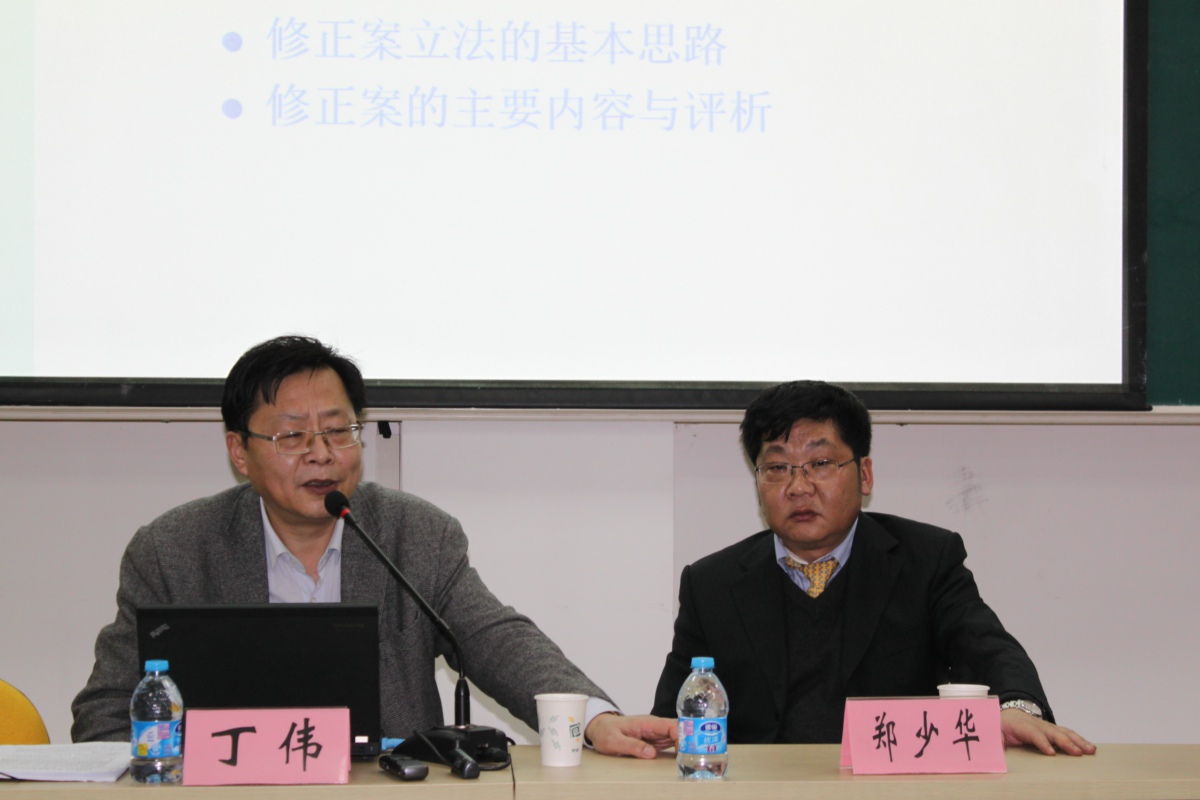 2015年3月17日晚上18:30,2015上海财经大学法学论坛第一讲在行政楼一楼阶梯教室举行,上海市人大法工委丁伟主任作了题为“《立法法》修改的若干问题探讨”的讲座。讲座由上海财经大学校长助理、研究生院常务副院长郑少华教授主持。
