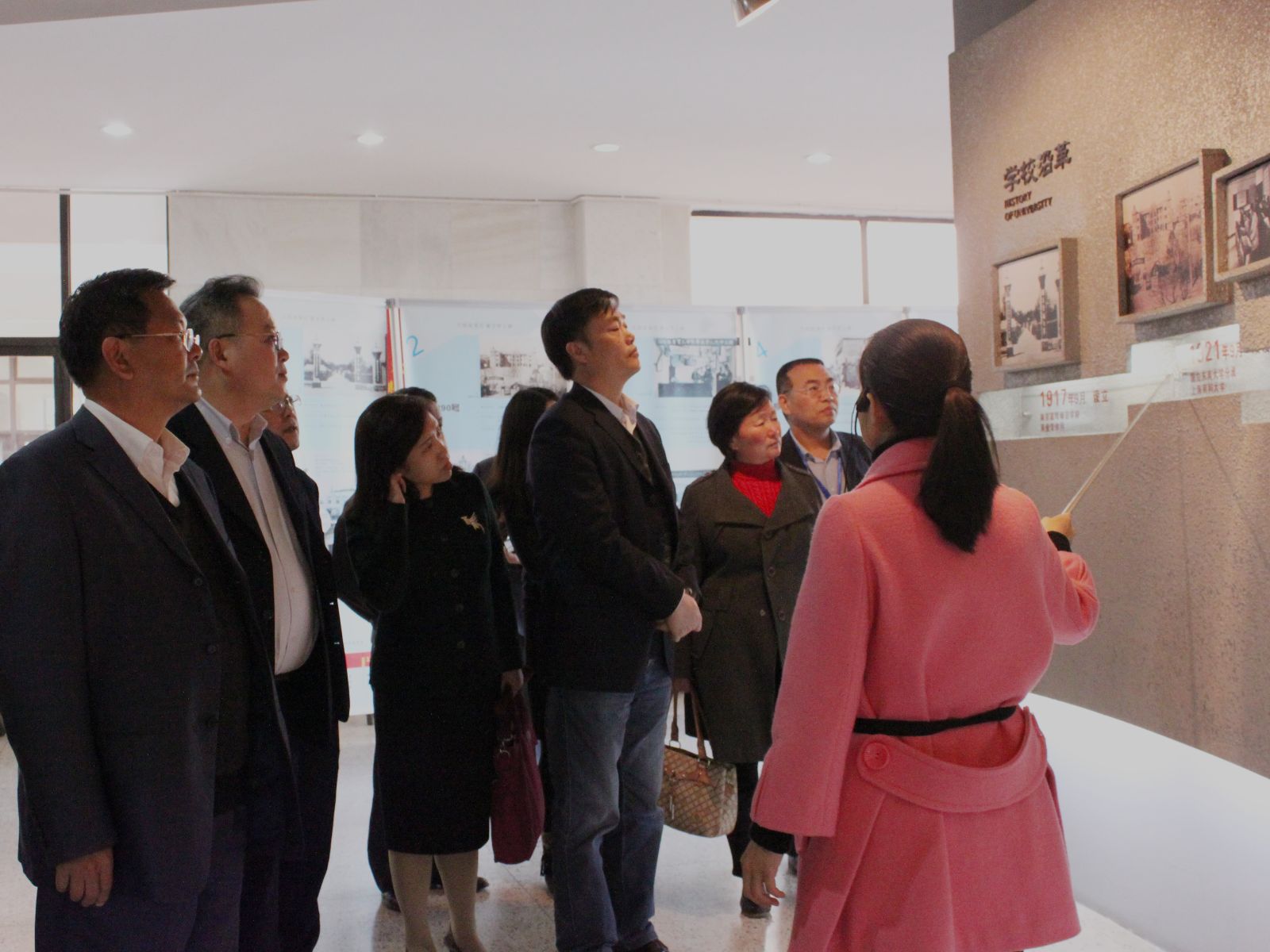 陈校长一行还在法学院周杰普书记的陪同下,兴致勃勃地参观了我校校史馆,认真听取了讲解员对上海财经大学近百年发展建设的情况介绍。