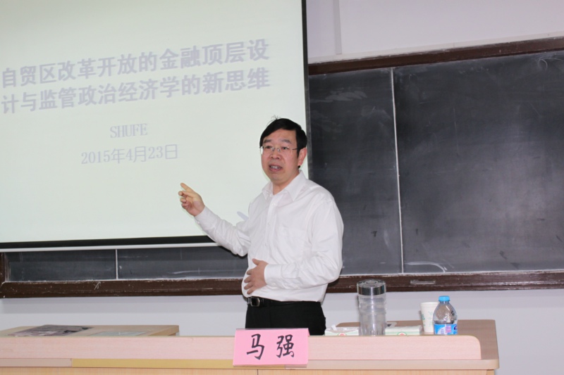 4月23日晚,2015上海财经大学金融法律论坛第三讲在国定路校区第二教学楼举行。上海银监局政策法规处处长、上海市金融学会副秘书长马强应邀作题为《中国自贸区改革开放的金融顶层设计与监管政治经济学的新思维》的学术讲座。讲座由上海财经大学法学院宋晓燕教授主持。