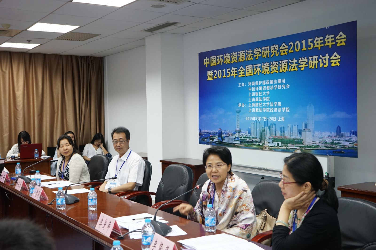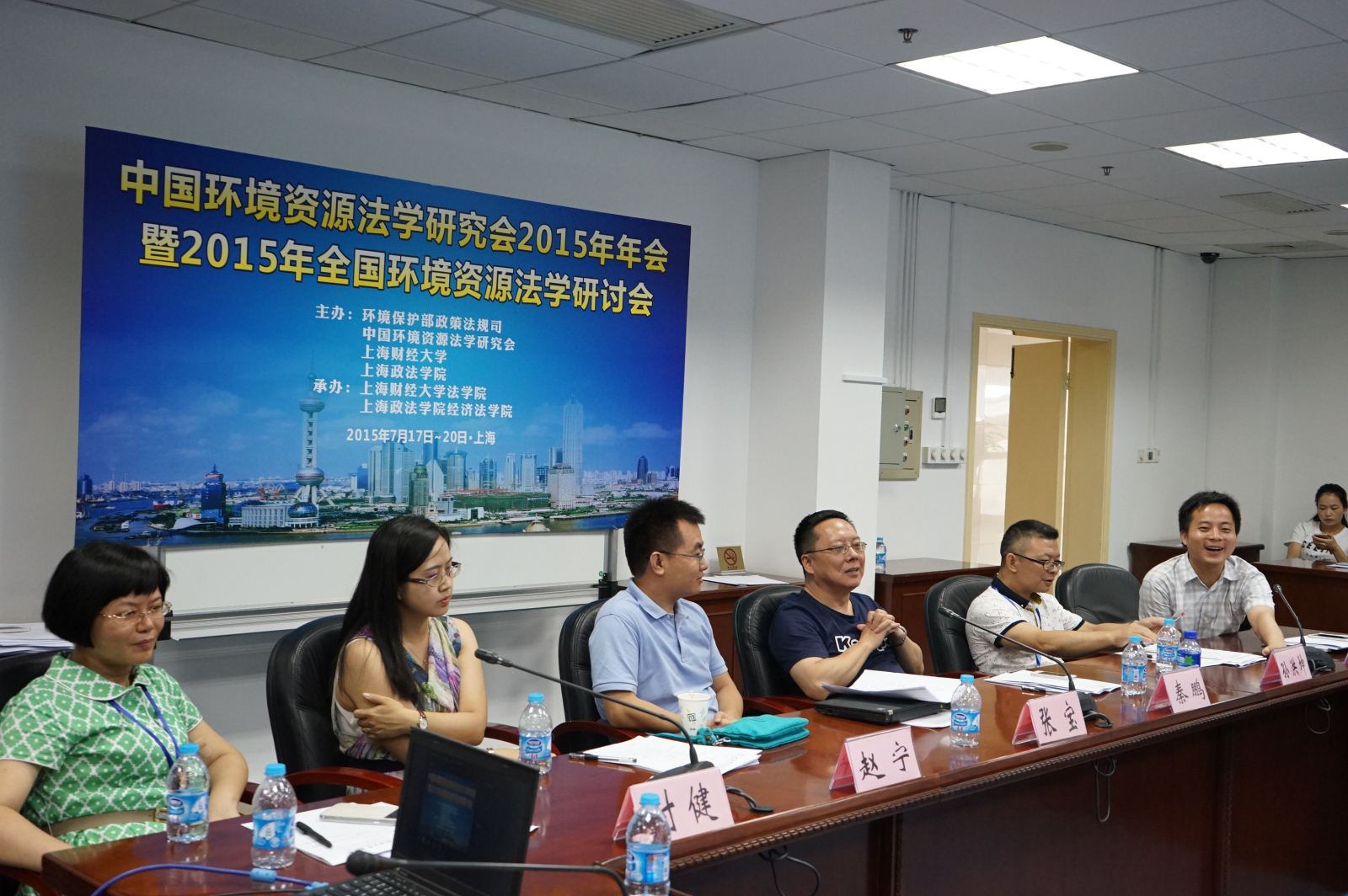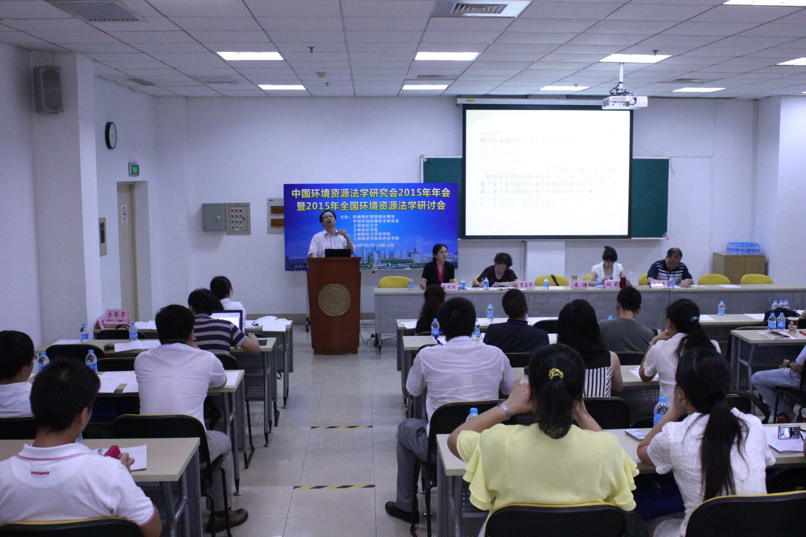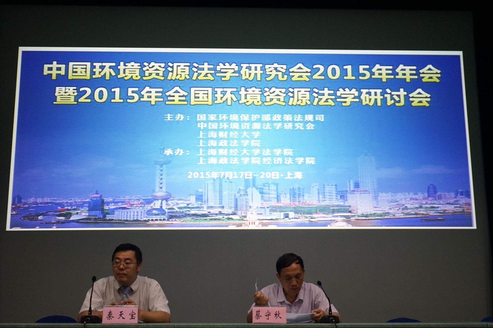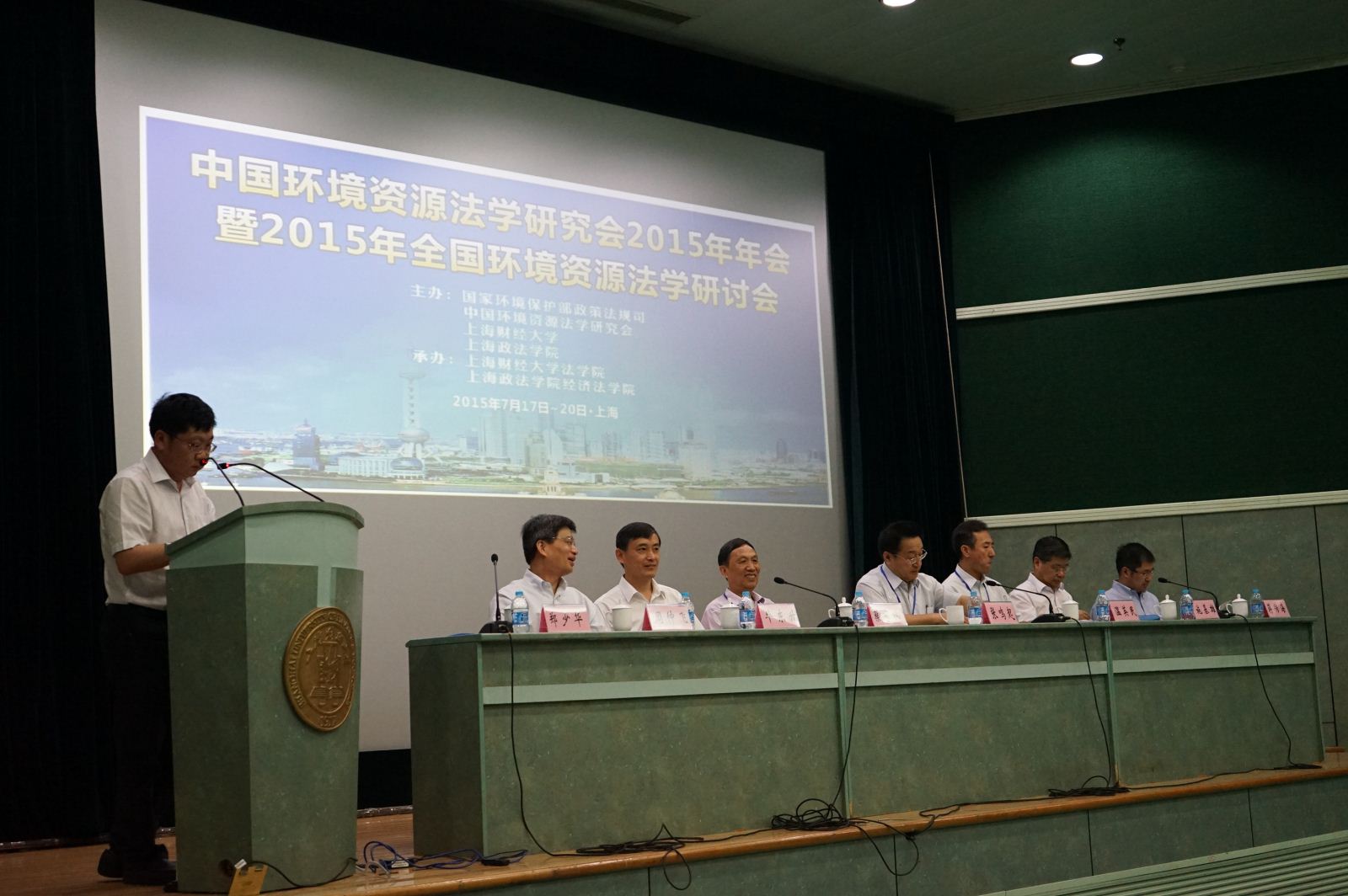 2015年7月18日上午,由环境保护部政策法规司、中国环境资源法学研究会、上海财经大学、上海政法学院主办,上海财经大学法学院和上海政法学院经济法学院联合承办的中国环境资源法学研究会2015年年会暨2015年全国环境资源法学研讨会在我校隆重开幕。大会开幕式由中国环境资源法学研究会副会长、上海财经大学校长助理郑少华教授主持。中国法学会副会长张鸣起、上海财经大学副校长蒋传海教授,上海政法学院校长周仲飞教授,环境保护部政策法规司处长温英民,最高人民法院环境资源审判庭廉政监察员毕东升法官,上海市法学会专职副会长施基雄,中国环境资源法学研究会会长蔡守秋教授等出席开幕式。