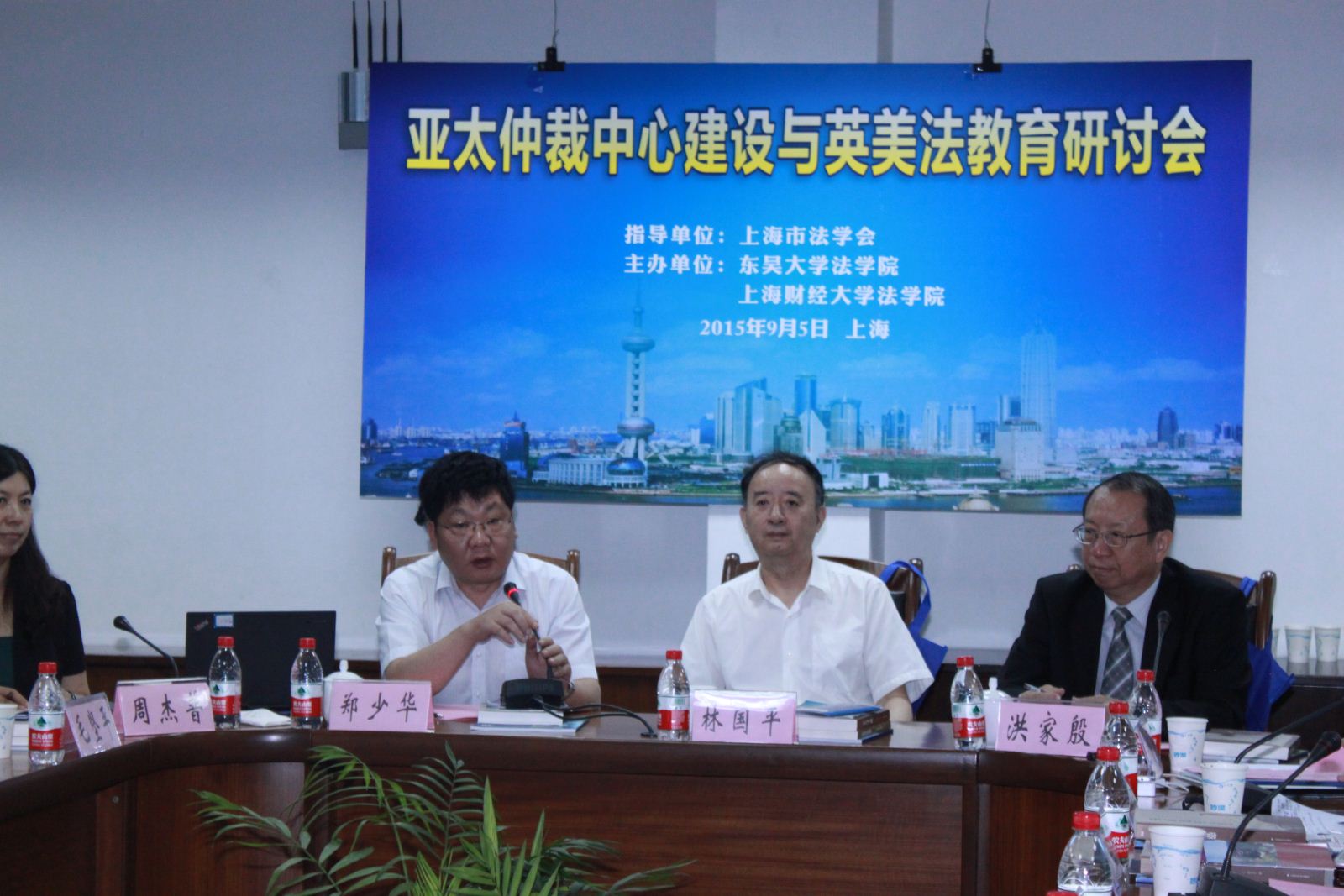 2015年9月5日上午,由上海市法学会指导、东吴大学法学院与上海财经大学法学院共同主办的亚太仲裁中心建设与英美法教育研讨会在上海财经大学行政楼五楼会议室举行。上海市法学会、上海市第一中级人民法院、东吴大学法学院、上海财经大学法学院有关领导、专家、教师,以及上海财经大学法学院部分在校研究生、英美法证书班学生参加了会议。会议由上海财经大学法学院党总支书记周杰普副教授主持。