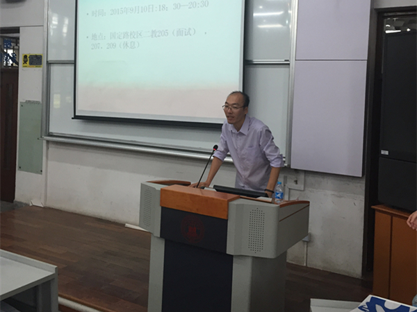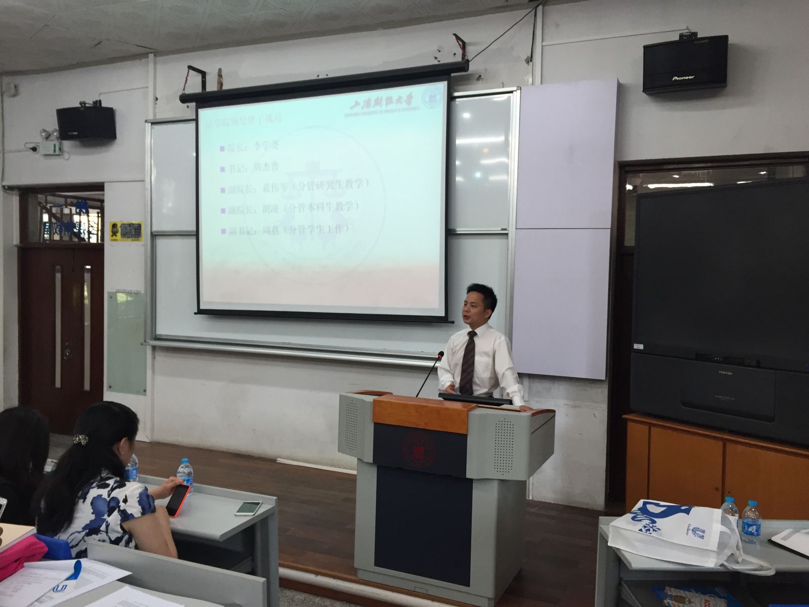 在上海财经大学法学院新生报到之际,我院于9月10日在国定路校区梯一组织举办了一场本科新生家长会。家长会由法学院党总支周燕副书记主持,李学尧院长、法学院党总支周杰普书记、胡凌副院长、吴文芳院长助理、外事办商舒主任、学生办公室付卓婧主任、学院分团委王蕴书记以及外教Steve等出席。