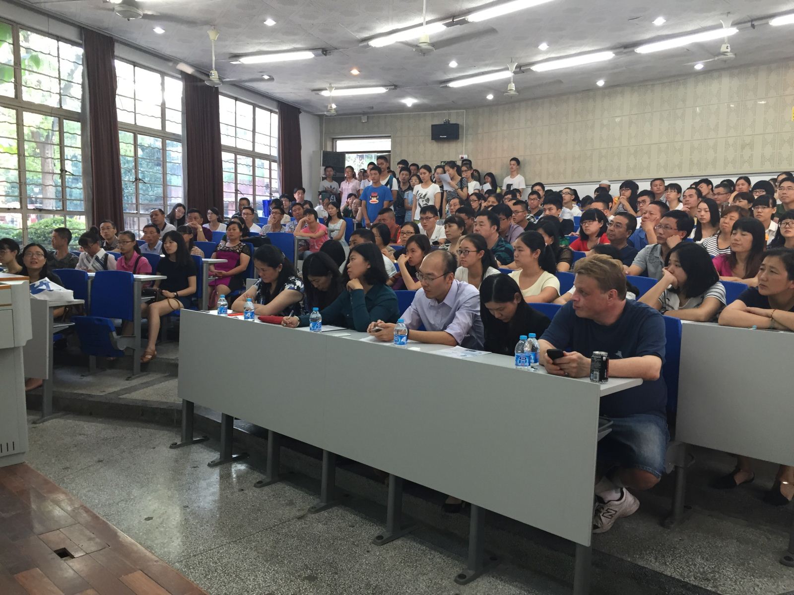 本次家长会参与人数众多,梯教座无虚席,更有不少学生站在教室走道里认真听讲。家长会历时近两个小时,但是会场秩序井然,与院领导的沟通互动也非常有序,表现出法学院新生及家长良好的素质和修养。