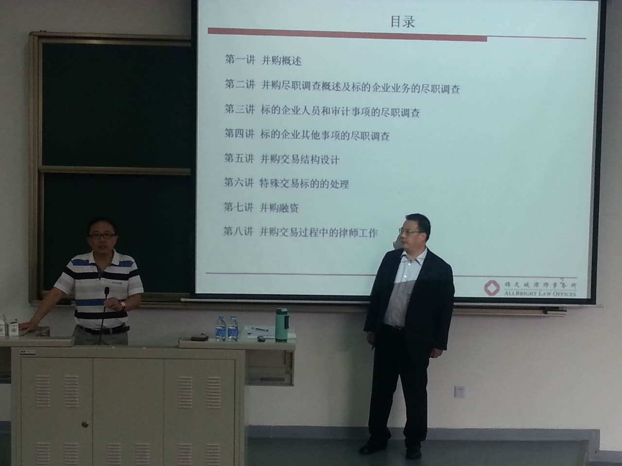 2015年9月21日上午,锦天城律师事务所高级合伙人徐军律师在武东路校区第三梯教T7为我院2014级专业型硕士和2015学术性硕士共百余名研究生们讲授本学期企业并购课。本次讲座是新学期法学院开设的系列实务课程“企业并购与重组法律实务”的第一讲,讲座由J.M教育中心主任徐继强教授主持。