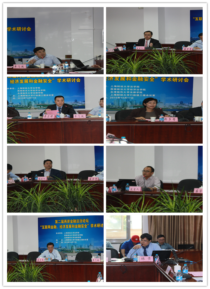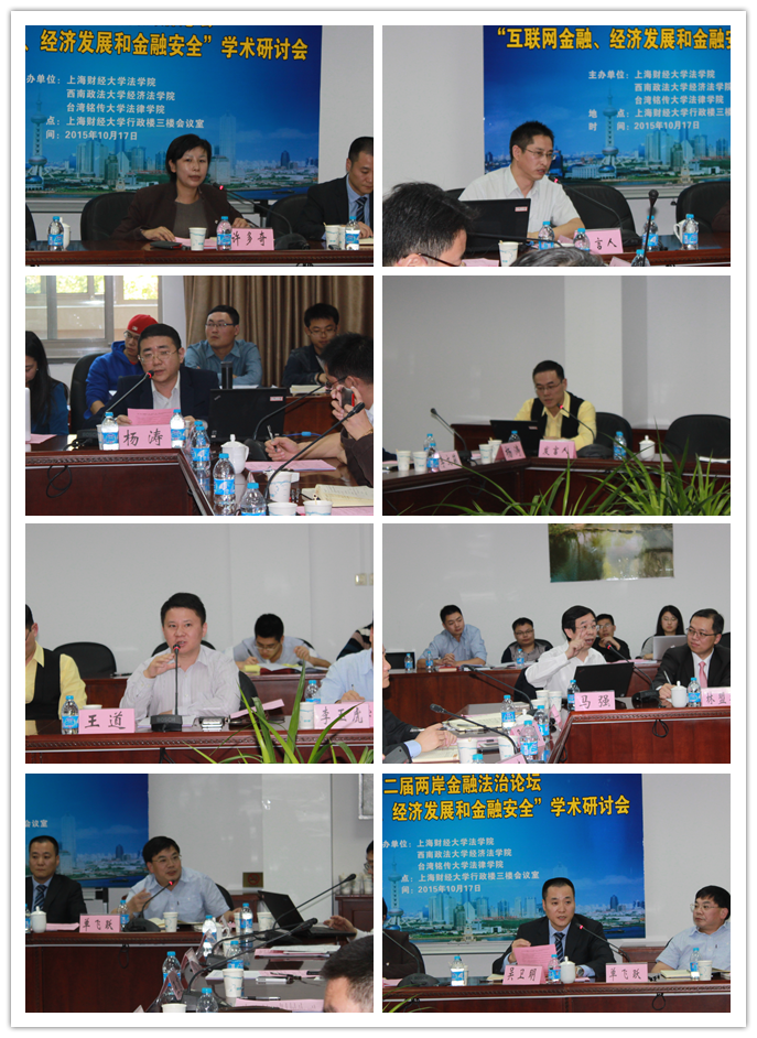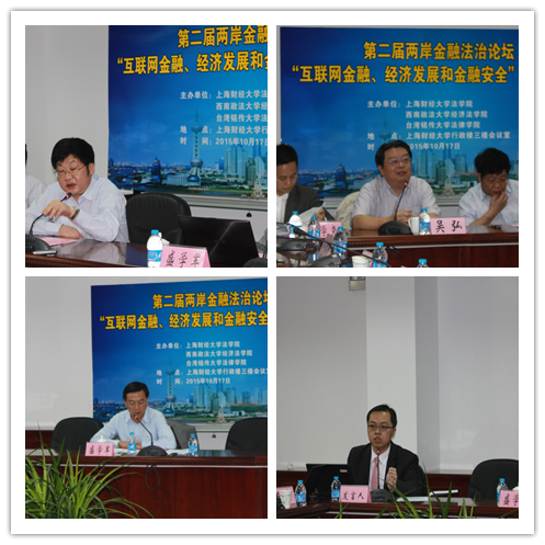 时值秋高气爽的季节,由上海财经大学法学院、西南政法大学经济法学院、台湾铭传大学法律学院共同举办的第二届“两岸金融法治论坛”于2015年10月17日在上海财经大学举行。会议围绕“互联网金融、经济发展和金融安全”的主题进行了为期一天的研讨。来自大陆和台湾两地的30多位学者就互联网金融对经济的影响、对金融法的挑战与风险防范等前沿问题各抒己见。