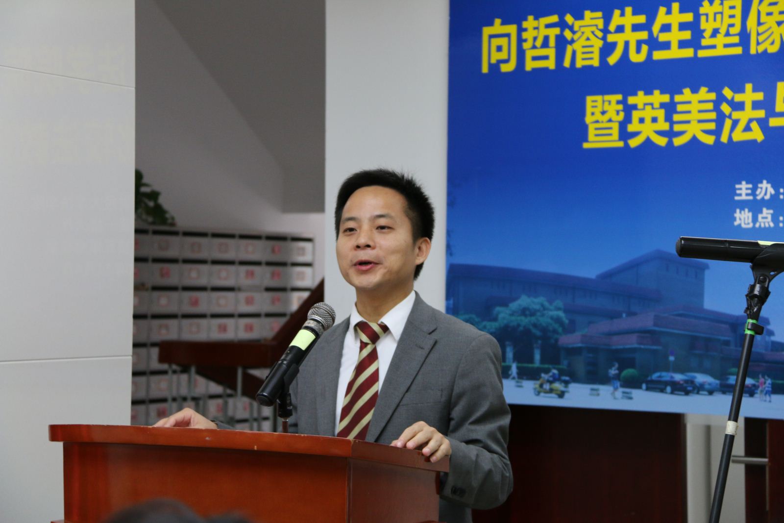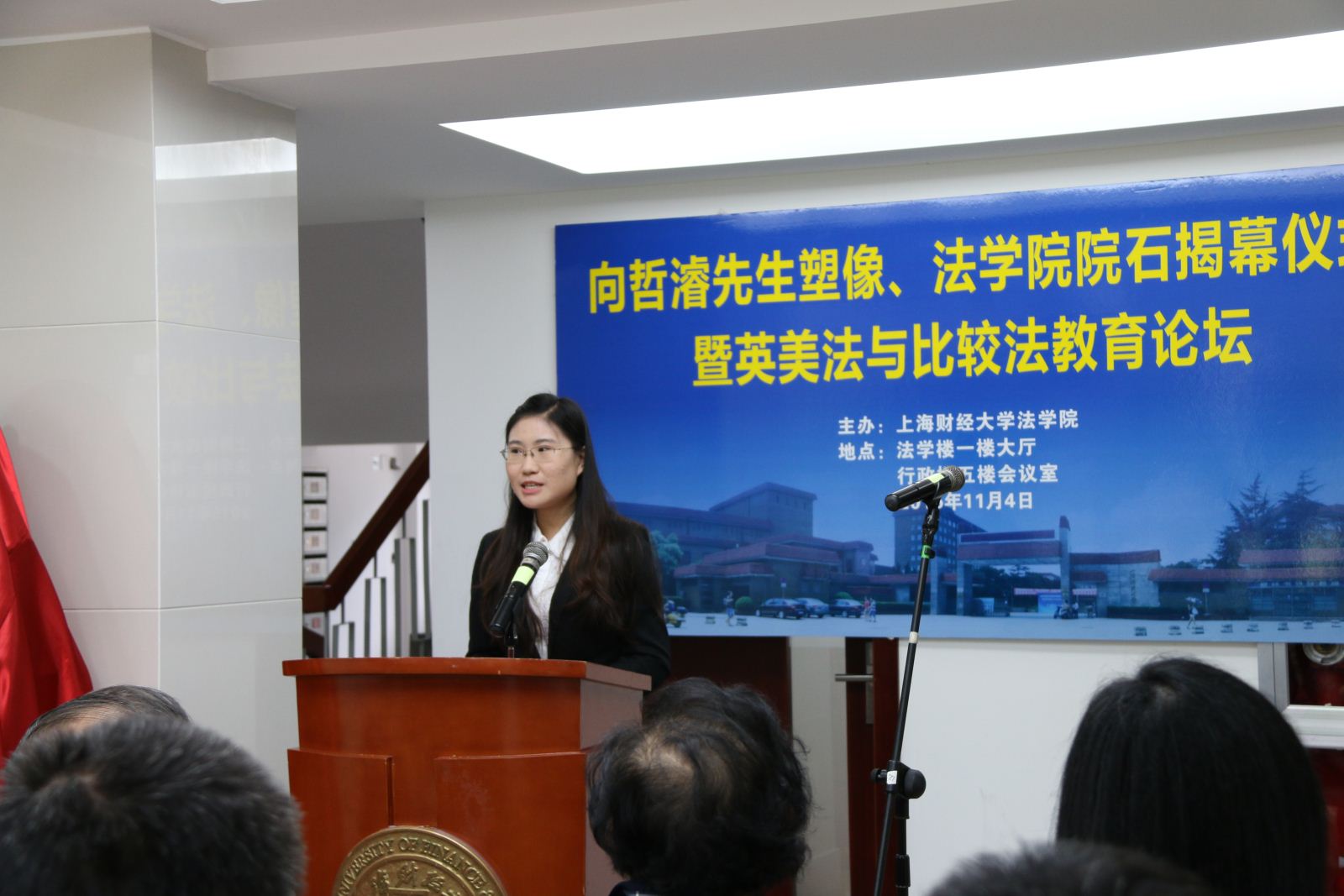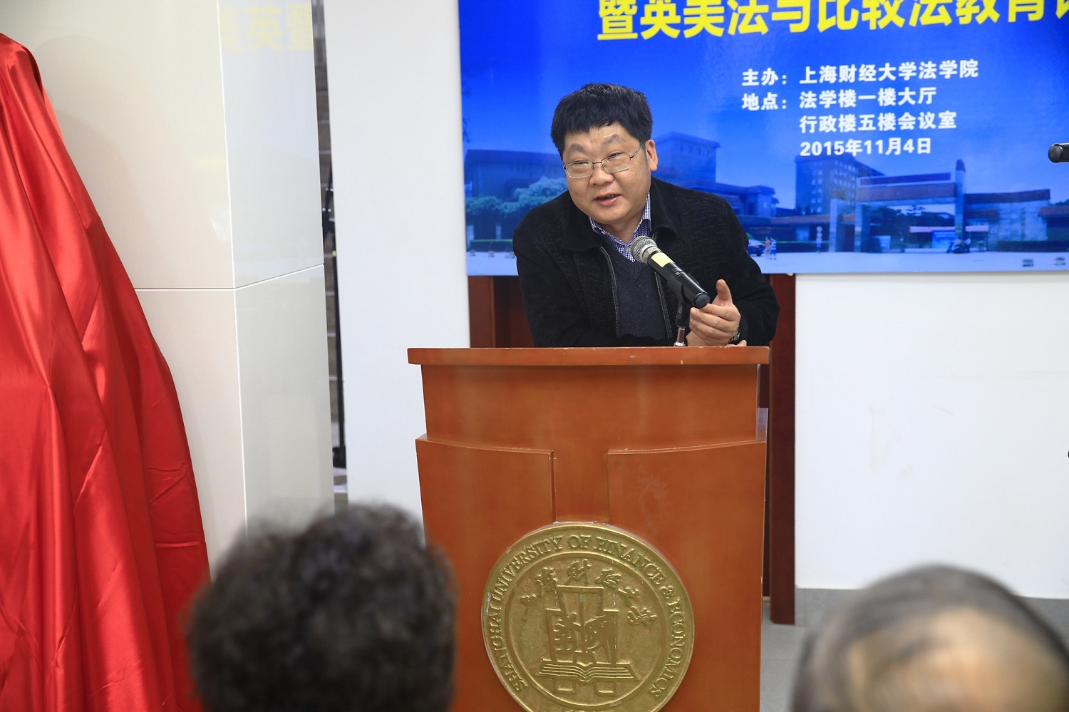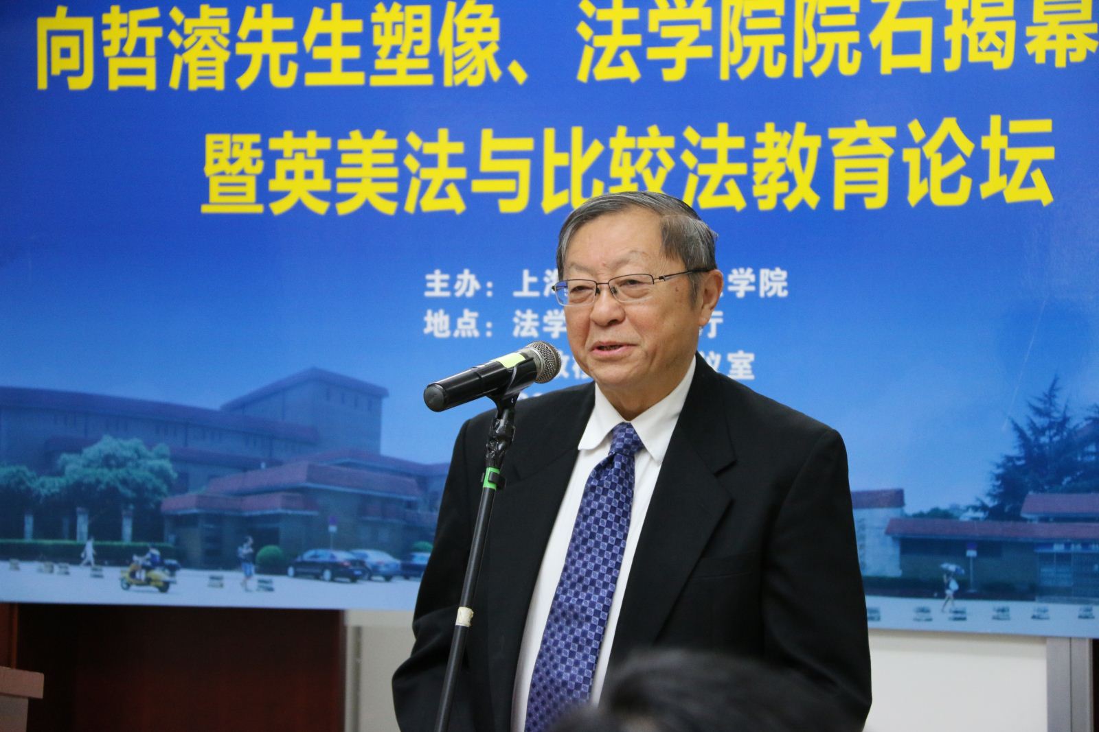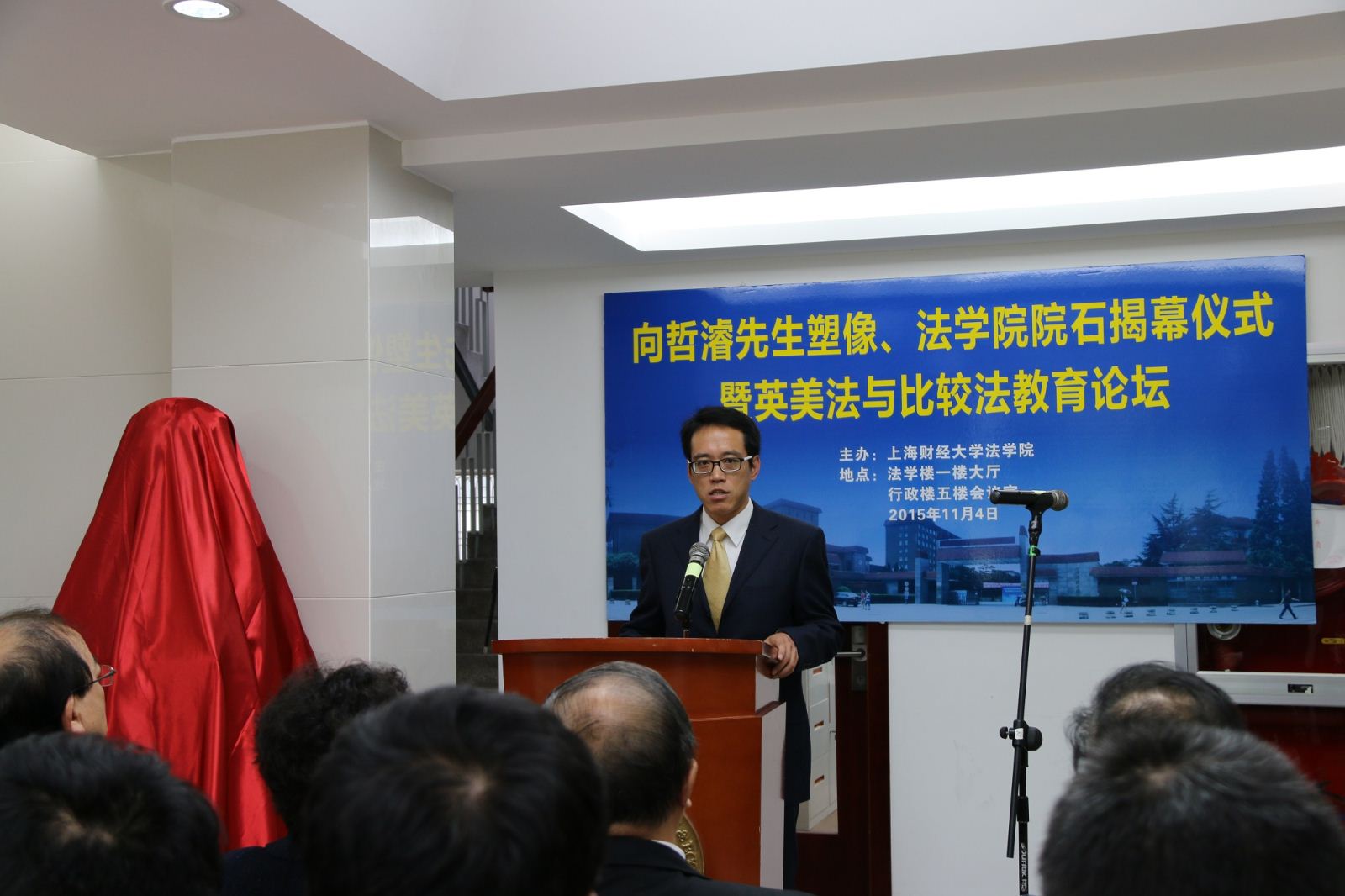 揭幕仪式由上海财经大学法学院党总支书记周杰普主持,法学院院长李学尧教授首先致辞。他表示上海财大法学院在中国大陆首次开设全英文授课的英美法班项目,重启英美法与比较法的法学教学实践,以继承光大东吴法学优良传统,该项目迄今已举办四届。法学院将继承和发扬向哲濬先生身上所具有的爱国精神,职业精神,将培养具有国际化视野,具备中国意识与彰显财经特色的卓越法律人作为主要宗旨,创新学科建设模式与人才培养模式,以建设高水平研究型财经特色的法学学科为目标,努力为中国的法制事业做出自己应有的贡献。