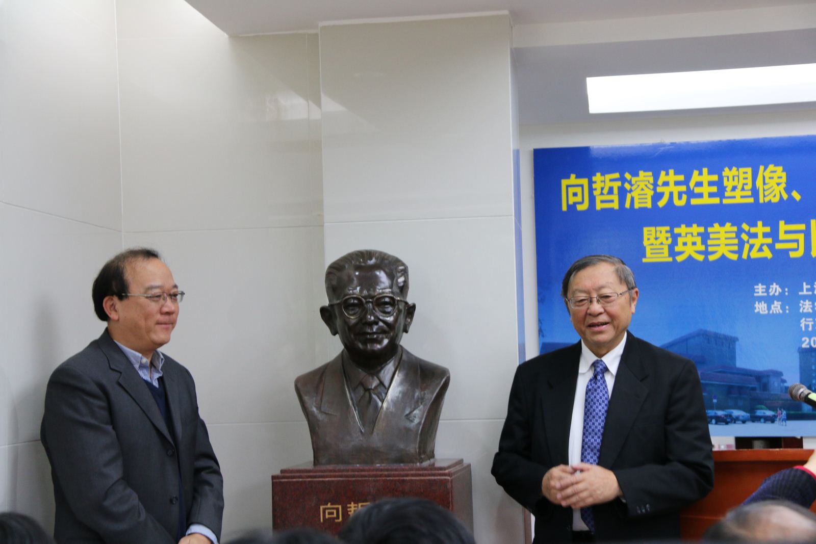 1948年的11月4日是远东军事法庭宣判日,67年后的今天上海财经大学隆重举行向哲濬先生塑像揭幕仪式。上海财经大学党委书记丛树海教授,上海财经大学校长樊丽明教授,向哲濬先生之子、上海交通大学向隆万教授,上海市卓越法律人才培养专家委员会主任、上海市法学会法理法史研究会会长、华东政法大学原副校长王立民教授,华东政法大学副校长刘晓红教授,上海财经大学副校长黄颖教授,上海财经大学校长助理、组织部部长朱鸣雄教授,上海财经大学校长助理、研究生院常务副院长郑少华教授等出席揭幕仪式,华东政法大学、复旦大学法学院、上海交通大学凯原法学院、同济大学法学院、上海对外经贸大学法学院、上海外国语大学法学院、上海大学法学院、华东理工大学法学院、上海立信会计学院法学院和上海商学院法学系的代表以及上海财经大学党委宣传部、校合作发展处领导及法学院校友代表和师生代表等到场祝贺。
