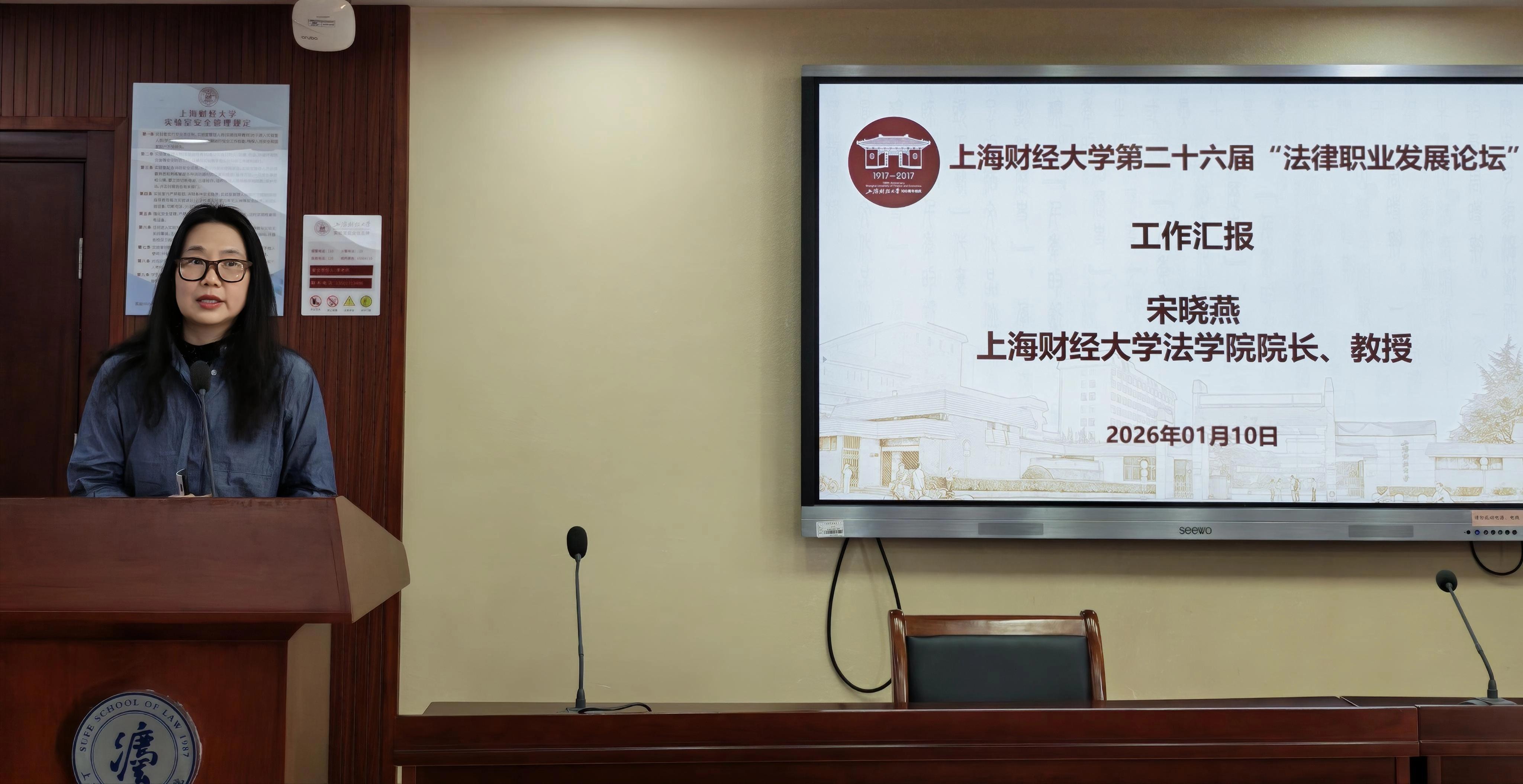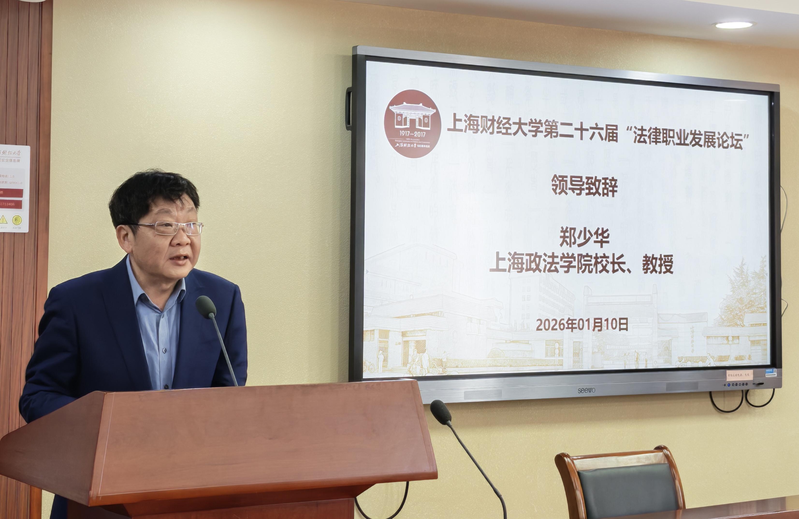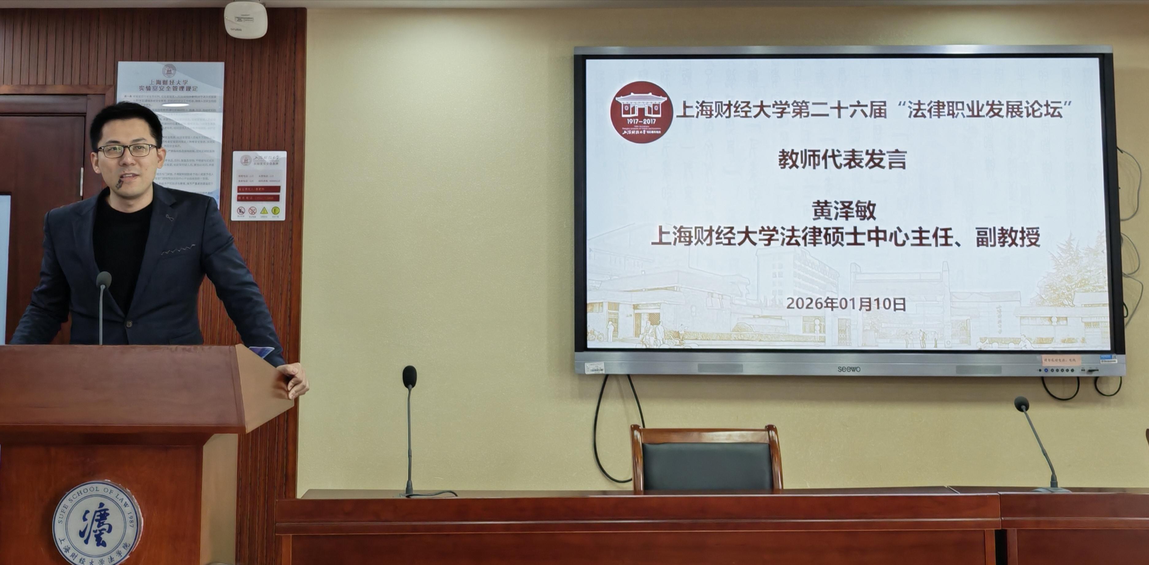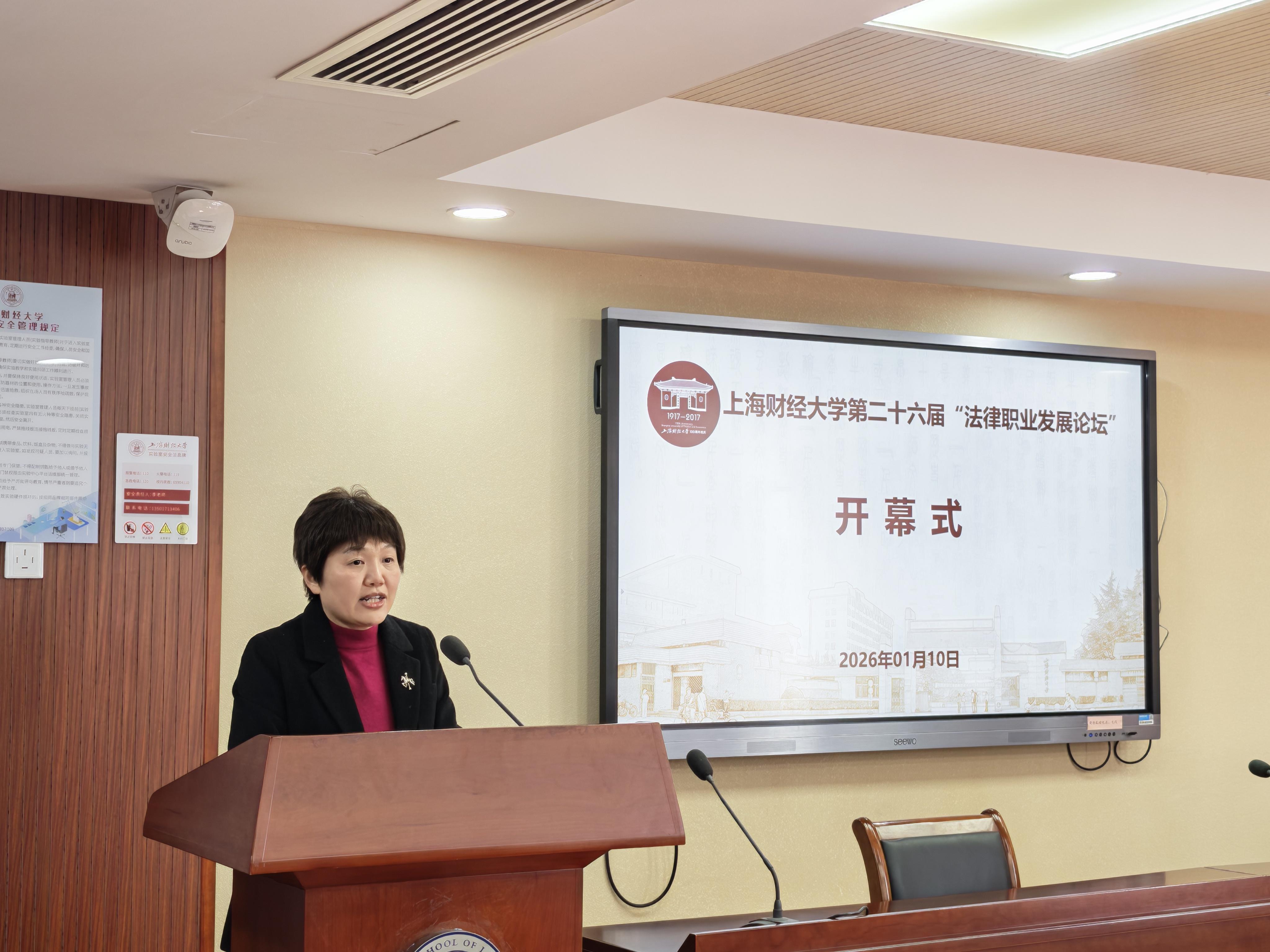 2026年1月10日,上海财经大学第二十六届“法律职业发展论坛”在法学院116会议室成功举办。来自法律界的五十余位嘉宾围绕法学教育、学科建设与就业指导三大主题展开研究与讨论。