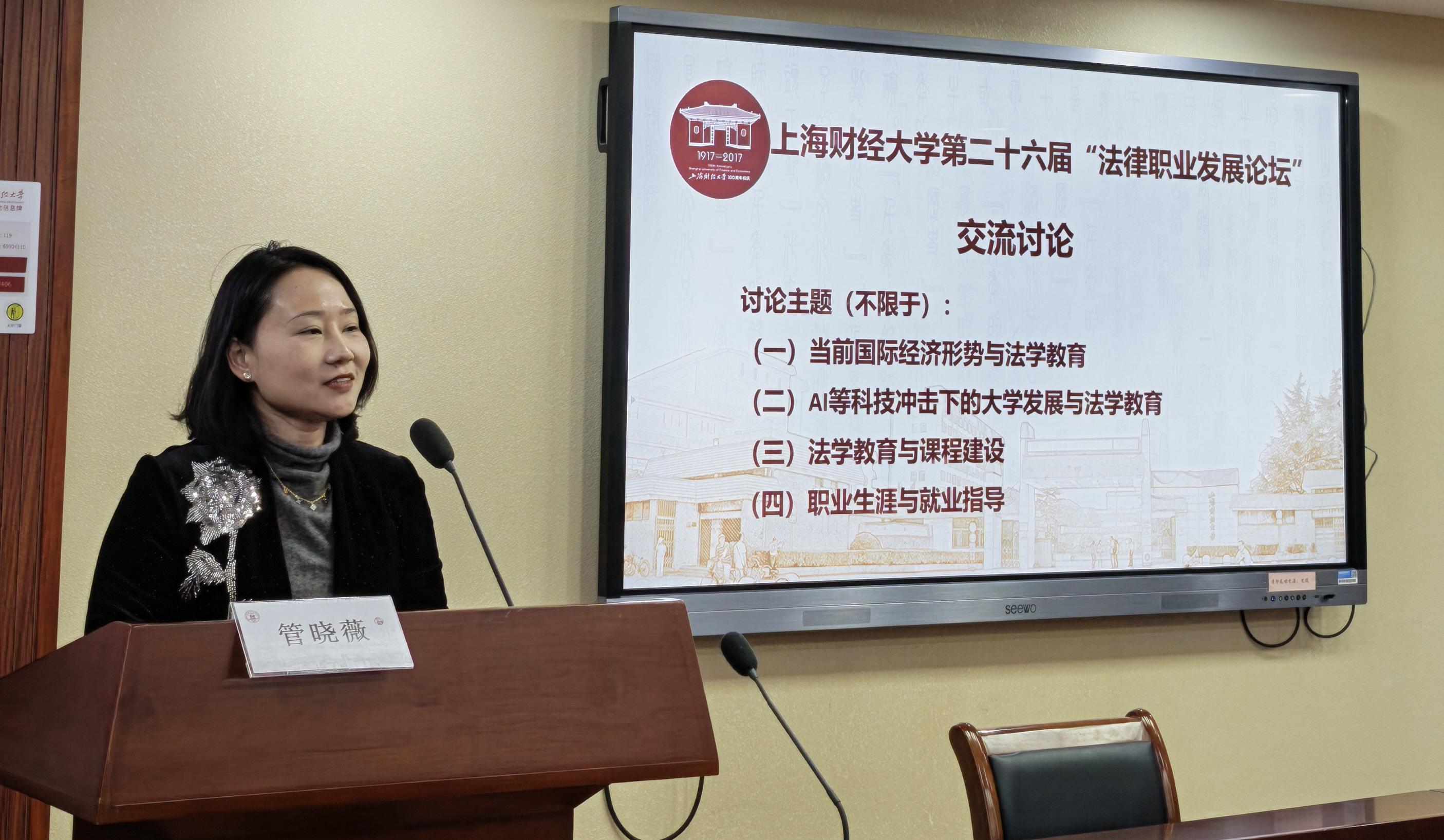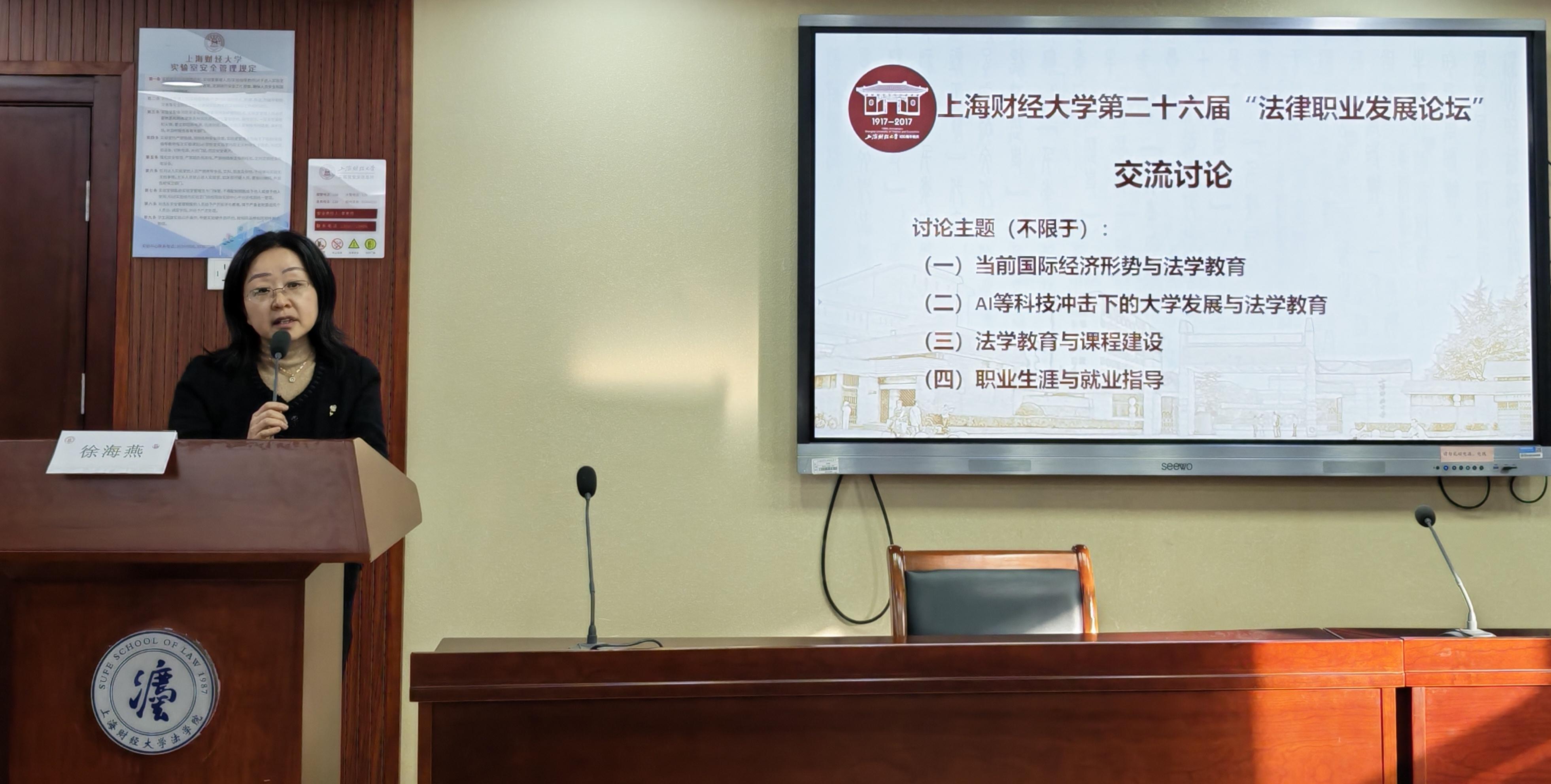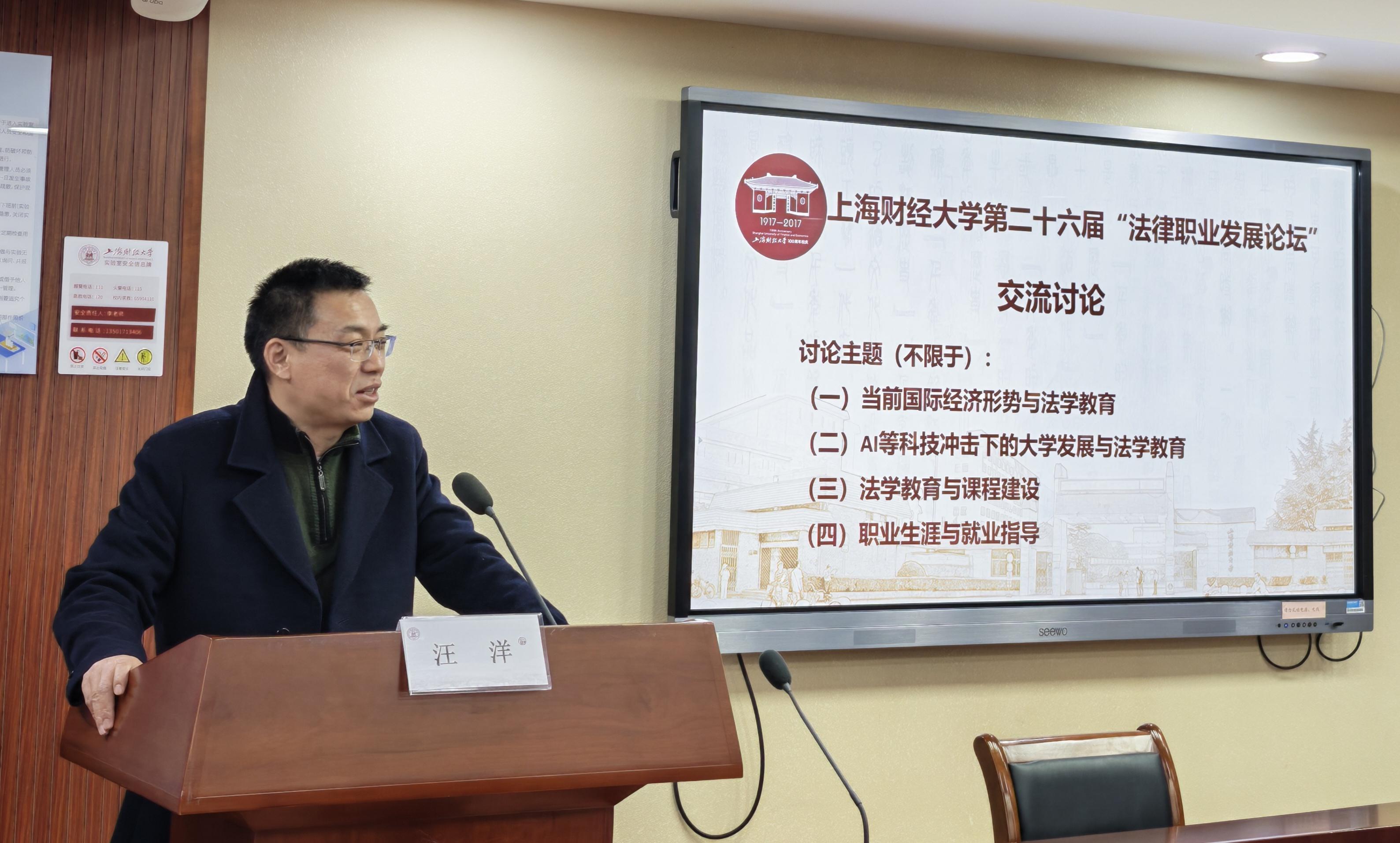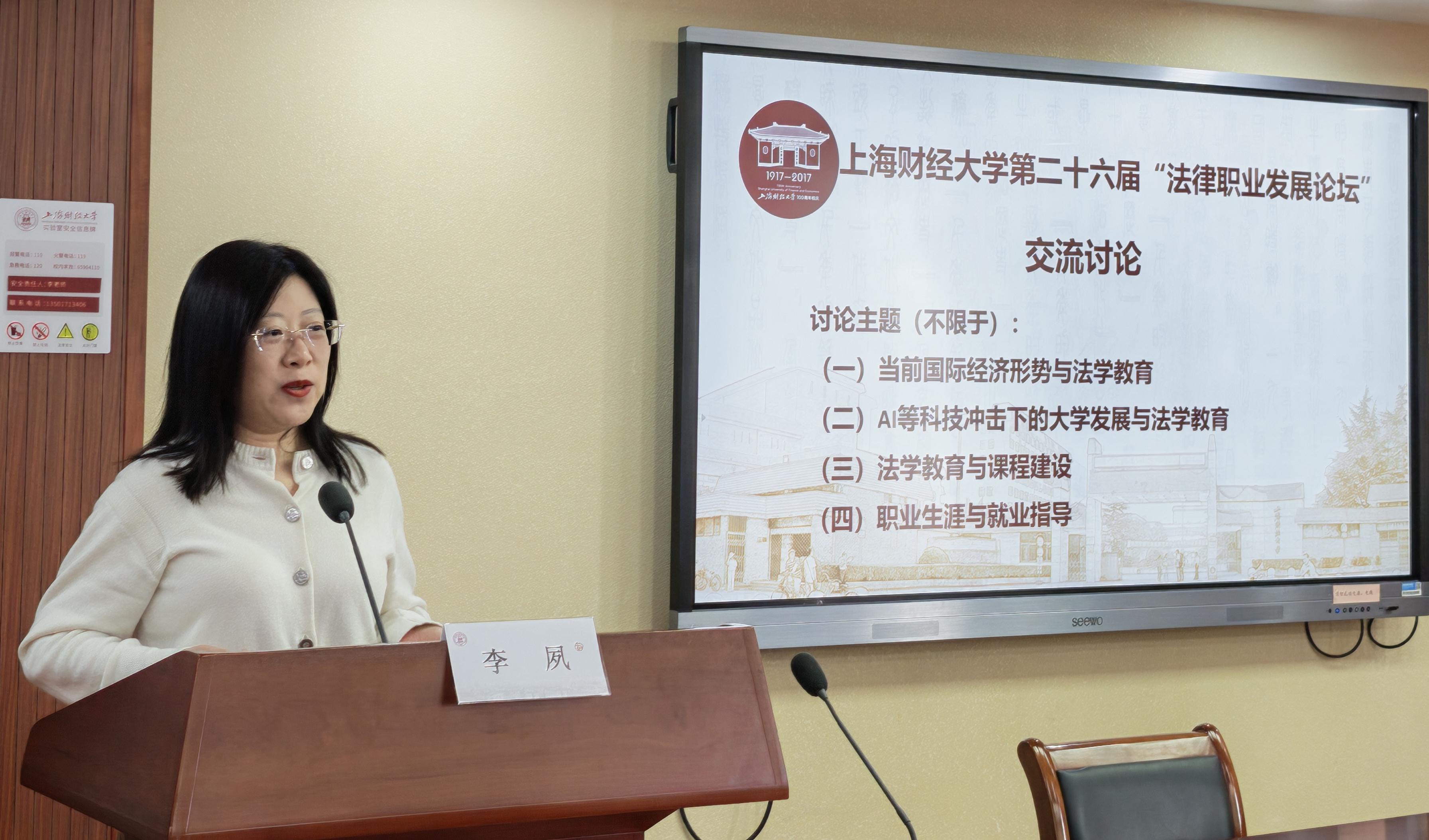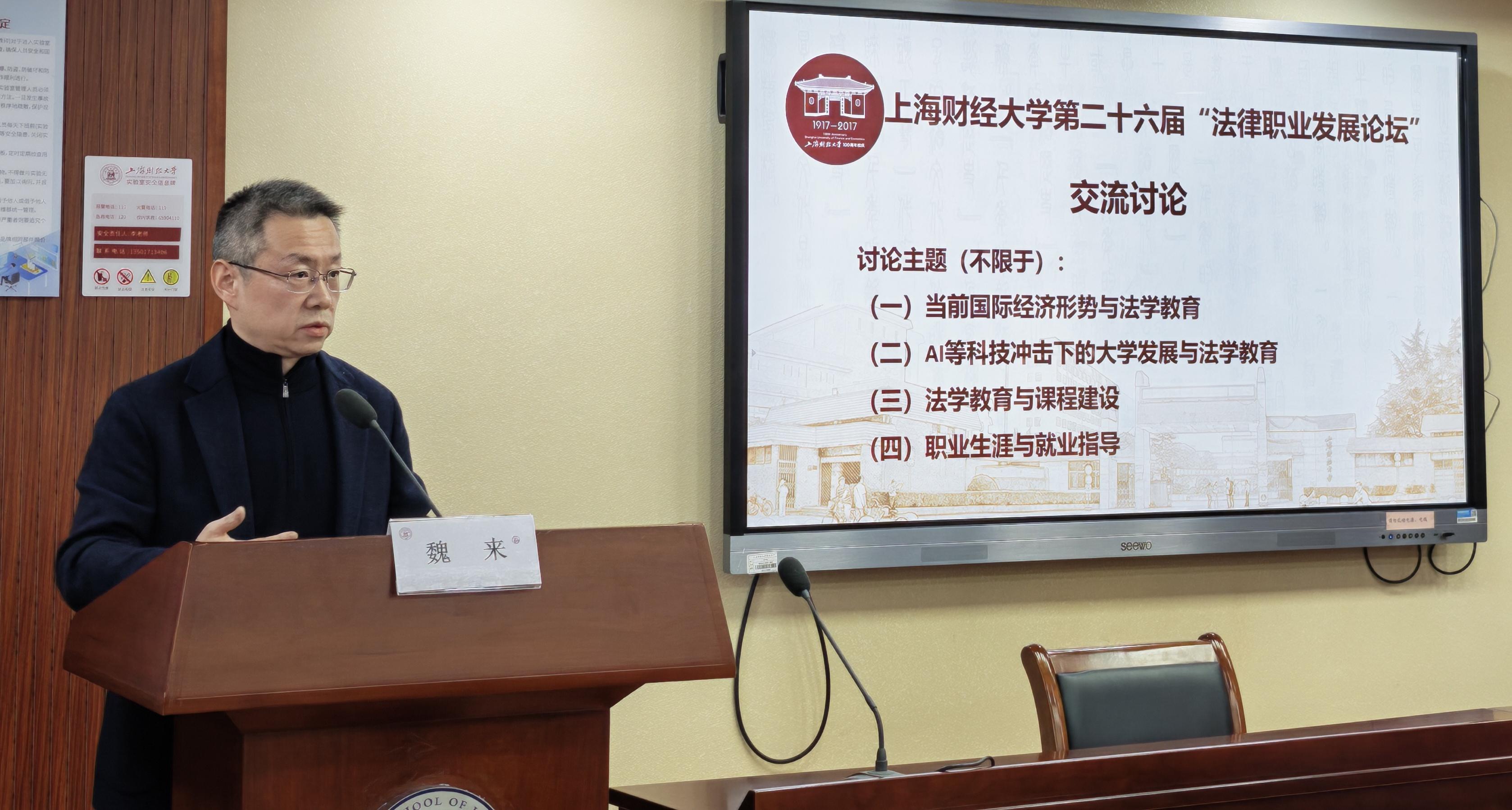 2026年1月10日,上海财经大学第二十六届“法律职业发展论坛”在法学院116会议室成功举办。来自法律界的五十余位嘉宾围绕法学教育、学科建设与就业指导三大主题展开研究与讨论。