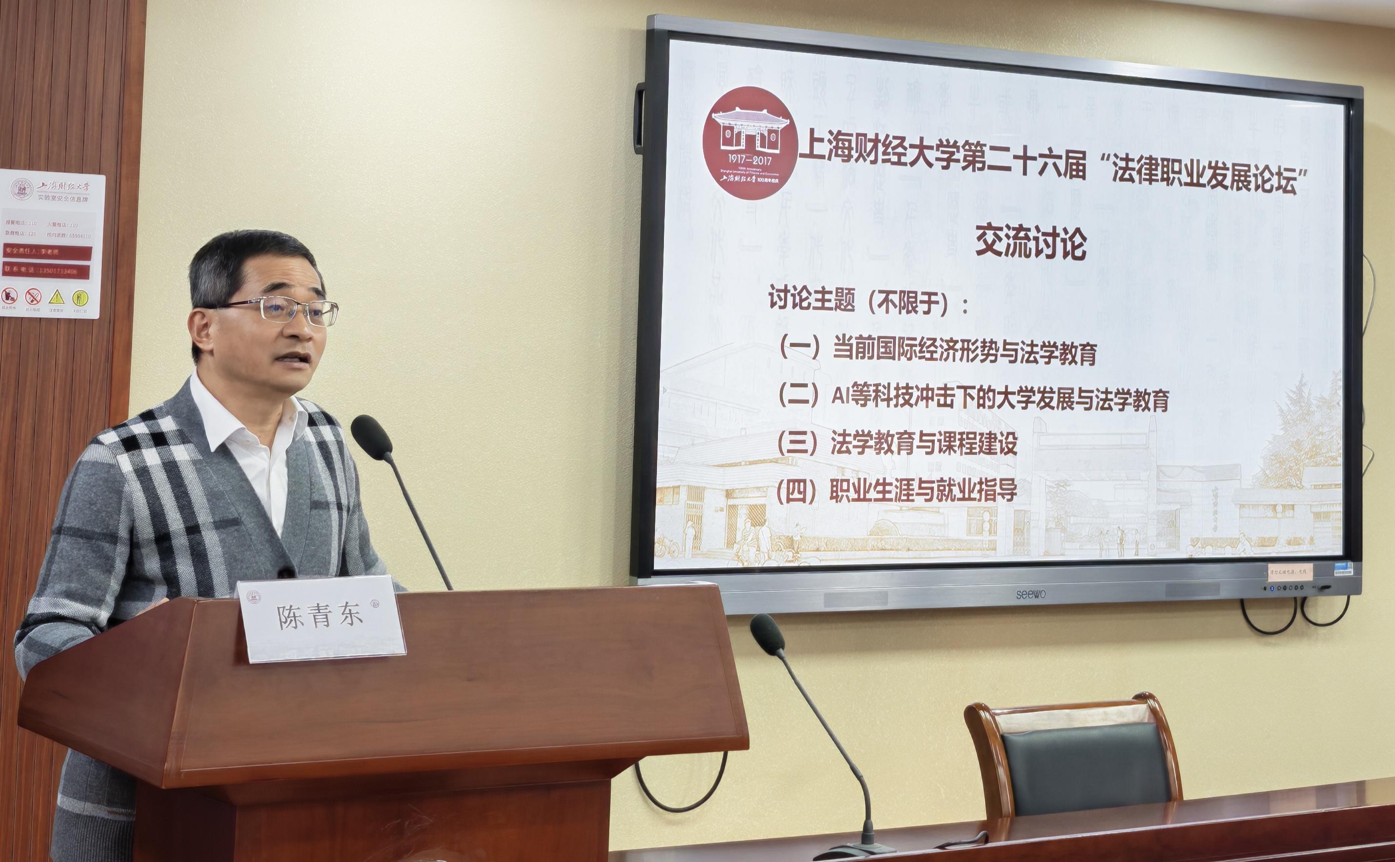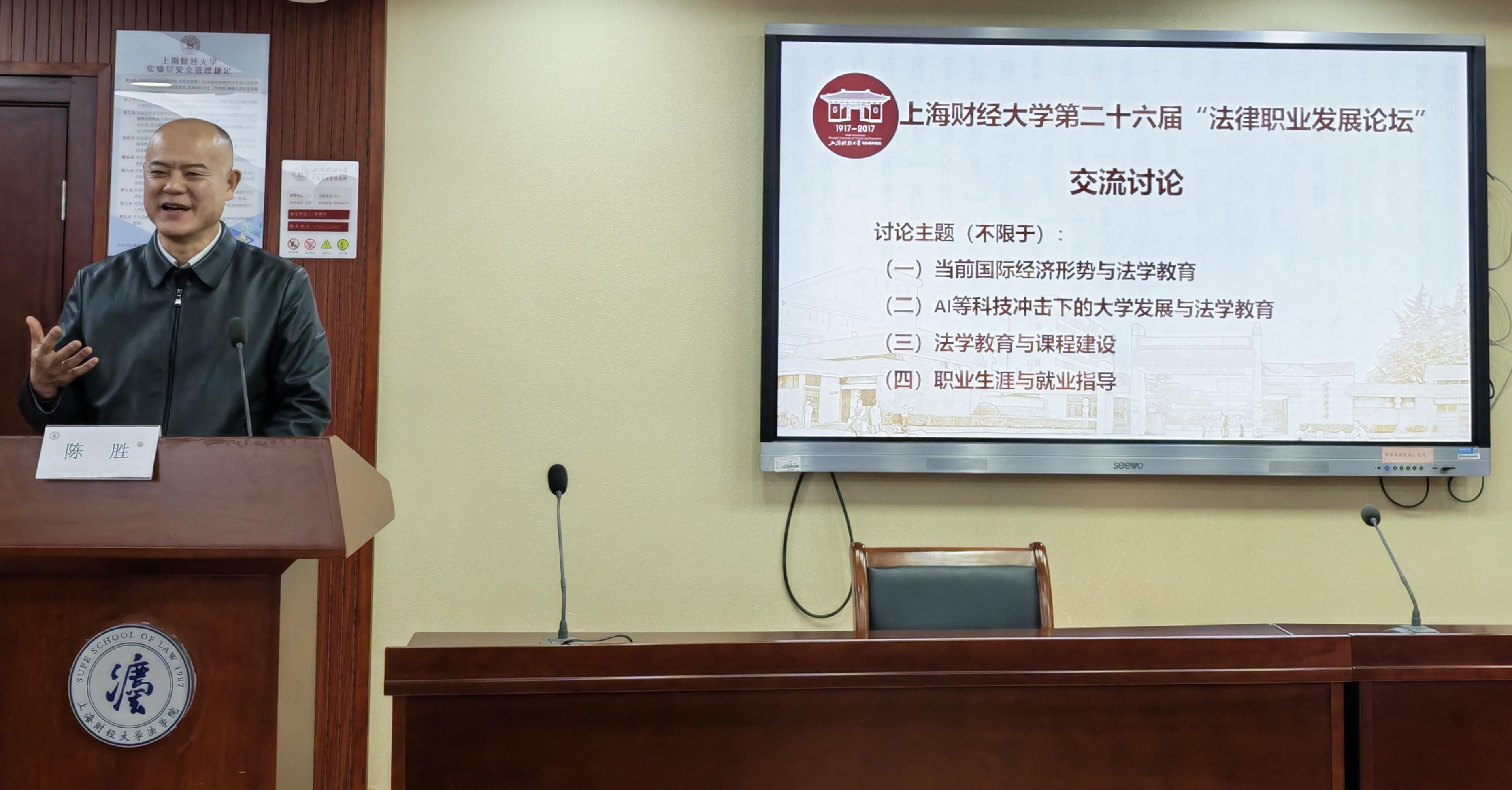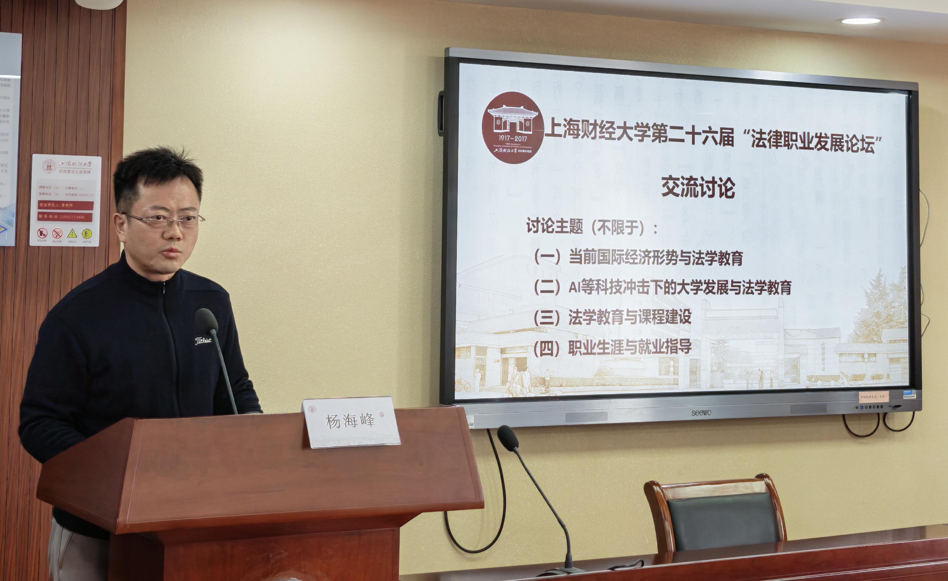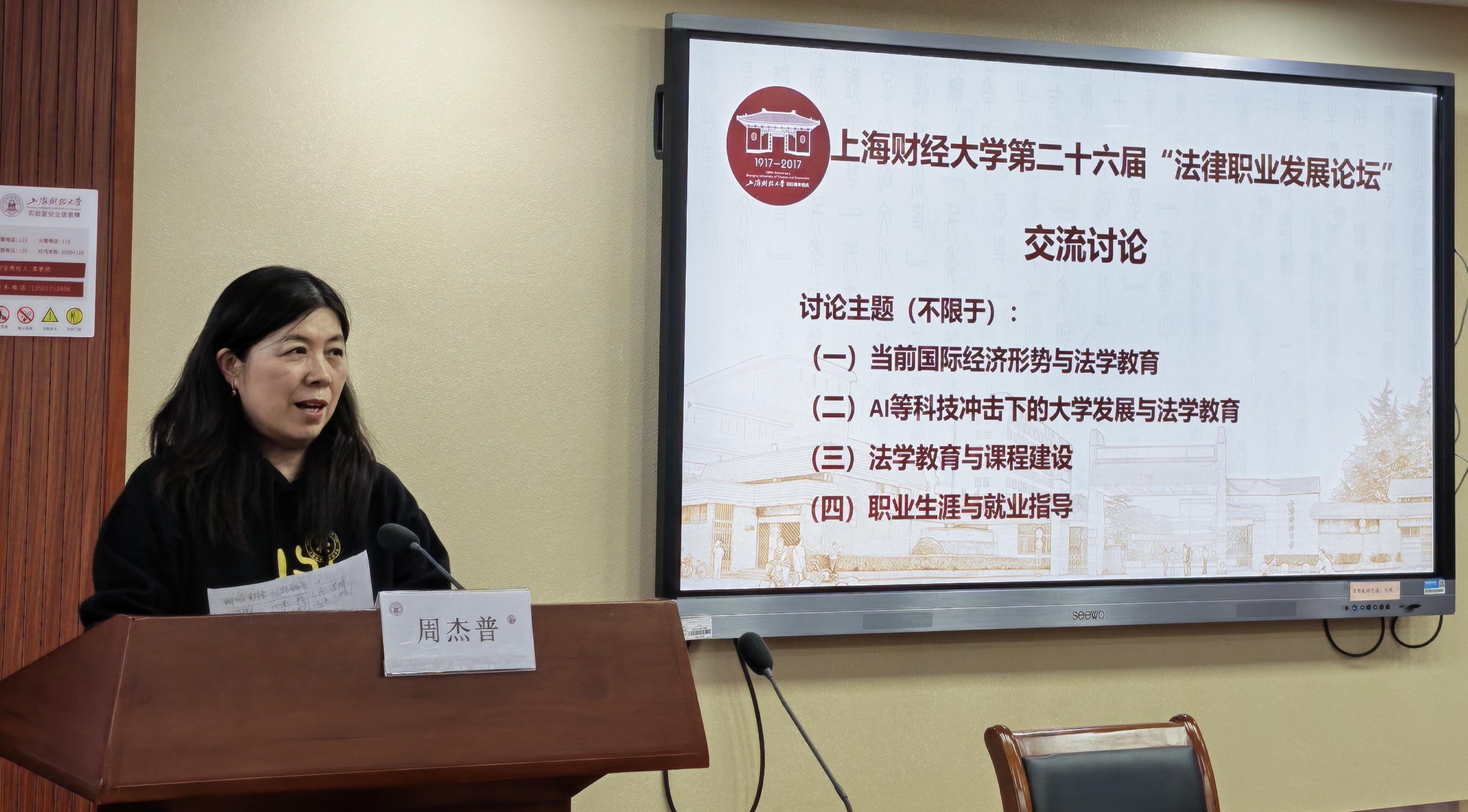 2026年1月10日,上海财经大学第二十六届“法律职业发展论坛”在法学院116会议室成功举办。来自法律界的五十余位嘉宾围绕法学教育、学科建设与就业指导三大主题展开研究与讨论。