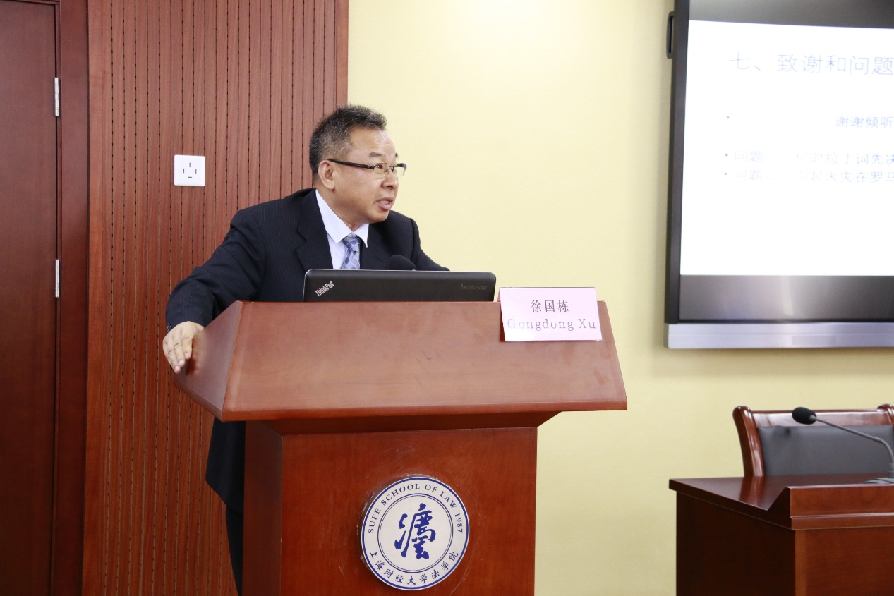 最后,马洪教授主持了本次研讨会的闭幕式,闭幕式上,阎士强律师感谢三位意大利学者能来中国作此报告,从一个律师的角度肯定了本次会议对于实践中问题解决具有重要的指导作用。贝特鲁奇教授再次表达对于上海财经大学法学院邀请参加本次会议的感谢,认为这种不同国家法律经验的交流对于有效的解释法律甚有益处,并表示希望在接下来的几年里,可以与上财法学院开展更多的学术交流合作。朱晓喆教授也再次感谢了三位意大利学者的到来,并指出上财法学院比较民法与判例研究所,以国家化的视野、立足于中国民法中具体的实际的问题,进行比较研究,同时也表达了对于双方在未来可以进一步加强交流合作的愿望。