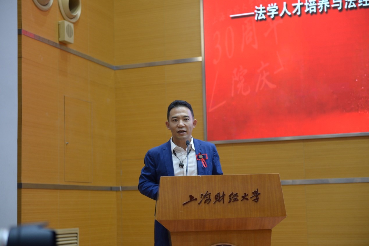 最后,校长助理郑少华致闭幕词。他介绍了法学院为庆祝30年院庆而开展的包括国际化论坛、校友论坛、法律共同体论坛在内的一系列活动,并将此视为展示法学院砥砺奋进发展过程的载体。他认为,法经融合是法学院复合型人才培养在财大体现出的比较优势,并对嘉宾提出的加强素质教育的建议表示认同。他说,素质教育远比职业教育更重要,打好博雅教育的基础,才能激发更大的可能性。就如何在法经融合方面做得更好,他希望法学院接下来能更多地整合校内外、国内外资源,在法经融合的知识结构下为同学提供更多的机会。在提到法学院富有特色的“三化一型”法学人才培养模式时,他表示,“学术化、职业化、专业化、复合型”这一模式的渐趋成熟仍然需要广大校友和在校师生们的共同努力。他表示,校友是大学与社会联系的桥梁,校友的经验对在校生十分宝贵,希望校友们常回家走走,回馈母校,为社会积极做出贡献。最后,郑少华教授表示,希望法学院能够继续完善法科校友论坛、法律职业发展论坛等品牌建设,使之成为校友与在校师生紧密联系的纽带,为构建上财法律共同体而努力。