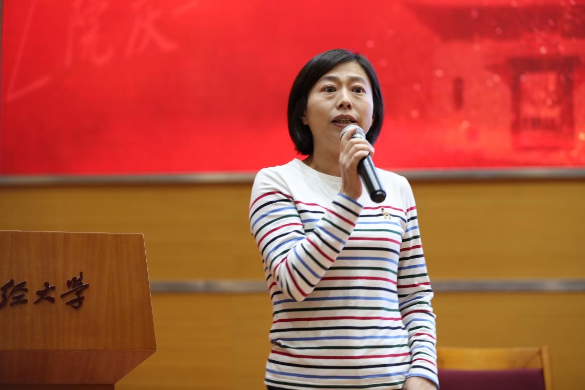 唐棣以“每个法务都是风控的导演”为题展开她的分享。她表示,对于企业法务而言,核心价值是如何在法律底线之上解决问题,没有足够财经知识对于企业法务的发展而言是有一定困难的。因此,需要法经理论和实务相结合,接受法经融合教育,掌握法律基础与实务的同时,要结合经济理论、实务积累和宏观经济背景的学习,这有利于在企业出现风险的时候通过计算风险收益从而做出决策。她对财大学生强大的适应性表示了赞赏,同时也对法学院未来的发展表达了愿景:希望法学院能够成为法经融合的达摩院,希望能够有卓有成效的企业法务实务培训,开拓互联网领域法务研究疆土。