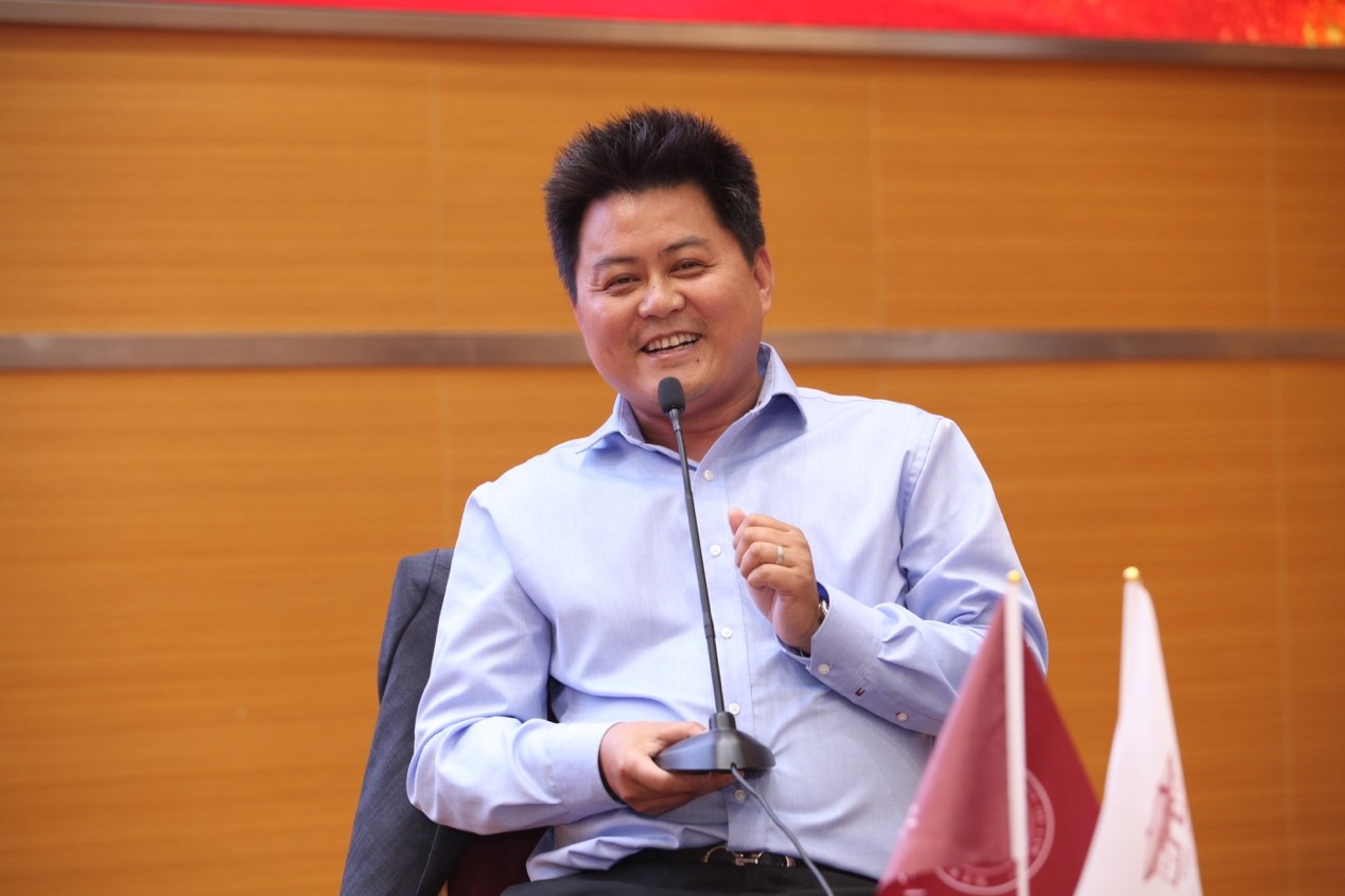 赫恒乐校友用“四个七年”介绍了自己的求学生涯和职场经历,从在政府部门从事为企业提供法律服务工作到离开政府在美的从事企业法务工作,再到逐渐转向企业审计、企业经营工作,到达瓶颈期再选择学习深造,再到如今成为集团总裁。他表示,在这三十年的经历中,最令他感怀的还是在财大学习期间的初心,也是这份初心,使他坚守至今。法科出身,到现在从事经济行业,虽然转变很大,但不变的是在过往法学学习中积累的风险意识。在跨界从事经营之后,这种风险意识和直觉为他在风险与收益平衡的决策中提供了极大的帮助。谈及法学院学科的发展,他表示,与传统的“四院五系”相比,“法商融合”是我们法学院的核心竞争力,既有具备法律底蕴的财经人才,又有具备财经底蕴的法律人才正是我们具有的差异化优势,因此,未来学院的发展和人才的培养,需要更加注重这种差异化优势。