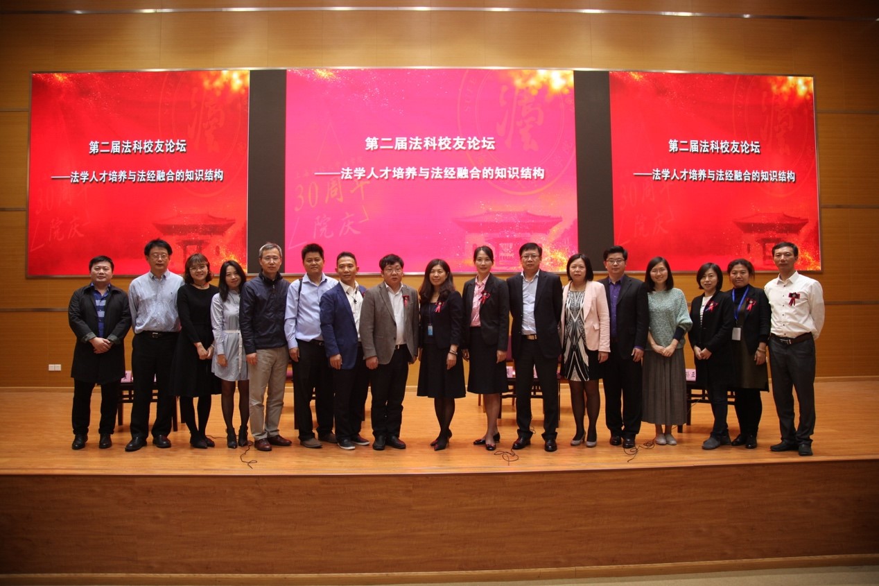 “校友为根、学术为魂”。2017年10月21日下午,由上海财经大学法学院主办、上海财经大学法学院校友会承办的以“法学人才培养与法经融合的知识结构”为主题的第二届法科校友论坛,在武川路校区创业中心一楼报告厅成功举行。上海财经大学校长助理郑少华,法学院党委书记、法学院校友会会长周杰普,法学院副院长(主持工作)宋晓燕以及法学院各届校友、在校师生出席论坛。法学院1991届经济法班校友、广东美的地产发展集团总裁赫恒乐,1992届经济法班校友、极星国际有限公司董事长孙亚平,1992届经济法班校友国浩律师(福州)事务所合伙人、监事马耀,1997届经济法班校友、中信证券医疗健康行业负责人、保荐代表人程杰,1997届经济法班校友、上海市高级人民法院刑一庭审判长孟猛,2001届国际经济法班校友、上海迪士尼度假区高级法律顾问杜波,1999届国际经济法班及2002届经济法学硕士校友、阿里巴巴文化娱乐集团大土豆事业群法务总监唐棣,2013届在职法硕上海班校友,君澜律师事务所股东合伙人、执行监事李曼蔺等八位优秀校友受邀出席论坛,就“法学人才培养与法经融合的知识结构”这一主题进行交流。本次论坛由马耀校友主持。受邀嘉宾围绕“法学人才培养与法经融合的知识结构”这一主题,结合自己的求学和工作经历,充分进行交流分享,各抒己见。真知灼见引起到场校友和在校师生的共鸣。