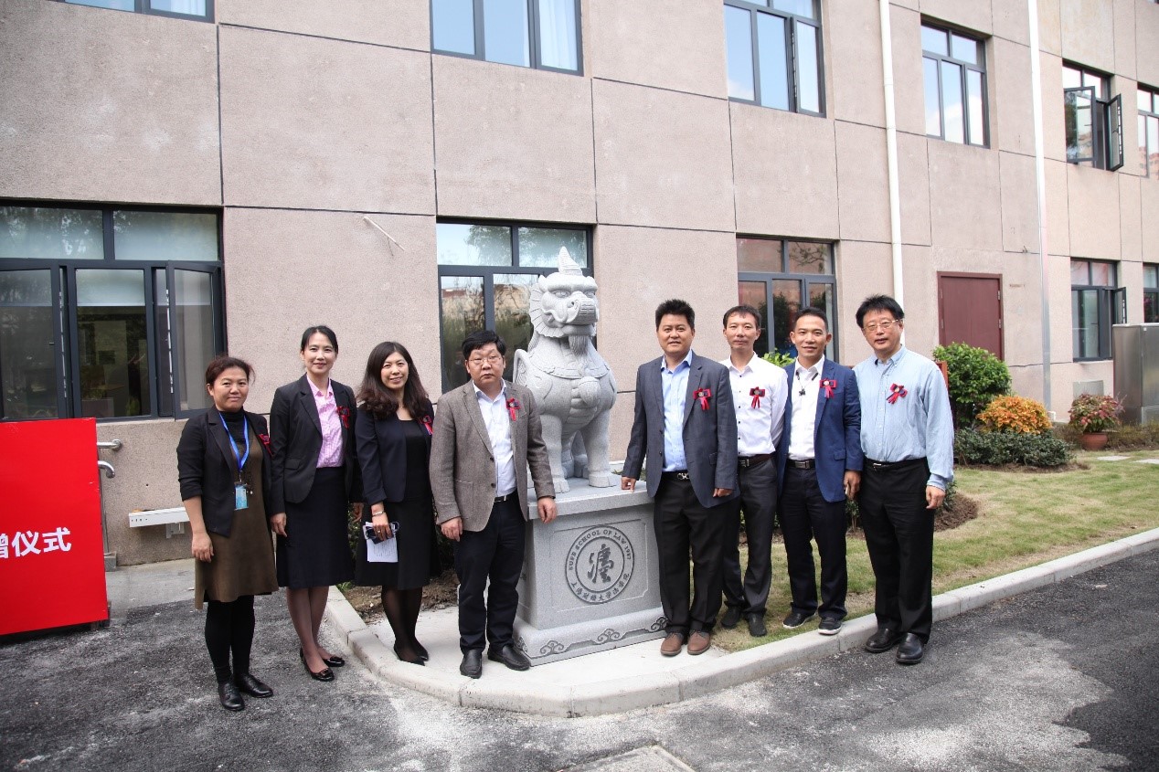饮水思源,志存高远。2017年10月21日上午,法学院1988级经济法班校友捐赠仪式在上海财经大学国定路校区法学院大楼前举行。时值母校百年华诞、法学院三十年院庆,1988级经济法班校友共同向法学院捐赠一尊“獬豸”雕像,以此表达他们对于母校、对于法学院的感恩之情。马耀校友表示,1988级经济法班之所以选择捐赠“獬豸”,更多体现的是该图腾背后代表的每一个法学人向往和追求的公平与正义。1988级经济法班校友国浩律师(福州)事务所合伙人马耀,极星国际有限公司董事长孙亚平,上海莱乾新能源有限公司副董事长、董秘、副总经理朱军勇,上海财经大学校长助理郑少华,上海财经大学法学院校友会会长、党委书记周杰普,上海财经大学法学院副院长(主持工作)宋晓燕,上海财经大学法学院党委副书记罗山鸿,1988级经济法班班主任赵维加副教授以及法学院部分师生参与本次活动。捐赠仪式由法学院党委书记周杰普主持。