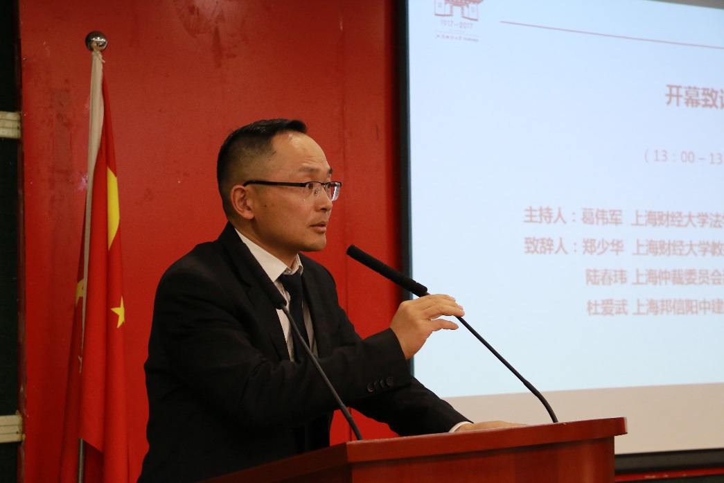上海财经大学校长助理郑少华教授、上海仲裁委员会副秘书长陆春玮、上海邦信阳中建中汇律师事务所管理合伙人杜爱武律师进行了开幕致辞。