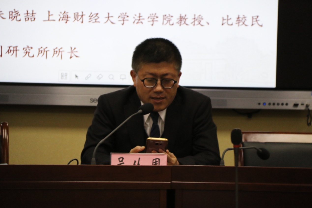 上海邦信阳中建中汇律师事务所管理合伙人杜爱武律师发言,他感谢上海财经大学法学院能够提供一个研究平台,比较民商法与判例研究不仅在学术上具有重大意义,同时对于实务而言亦发挥着积极的指引作用。他希望能够吸收本次研讨会的精华,今后为法律实务的操作提供帮助。