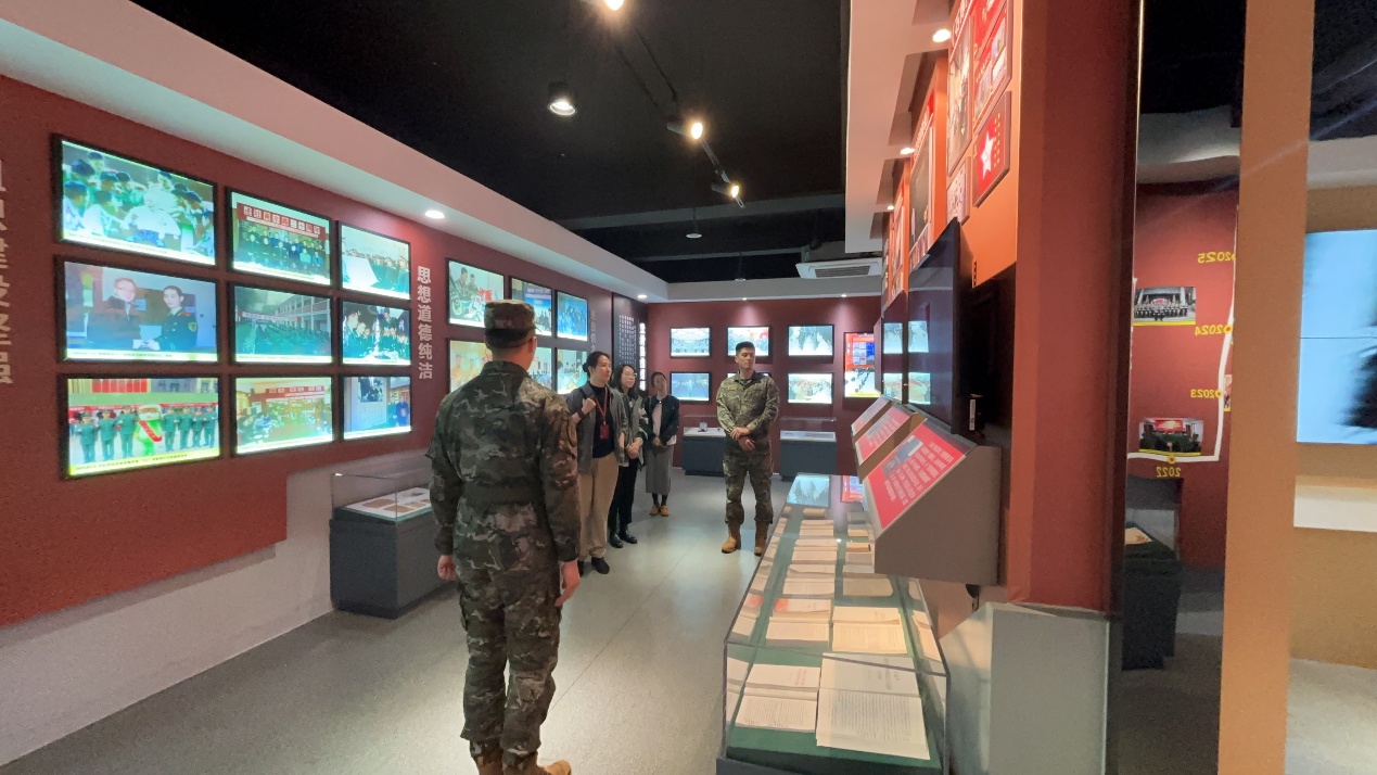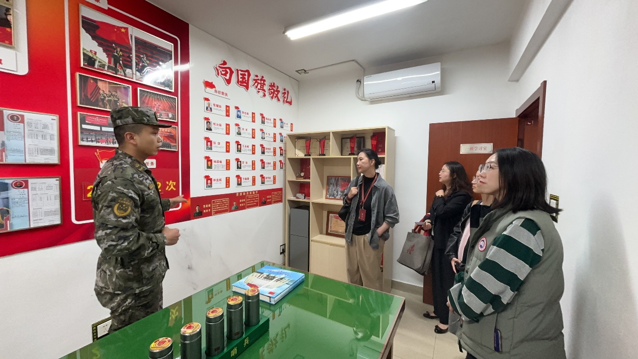 在中队荣誉室,官兵们深情讲述了中队的光辉历程和光荣传统。一幅幅珍贵的历史照片、一块块熠熠生辉的奖牌、一面面承载荣誉的锦旗,生动展现了执勤十中队在维护社会稳定、服务人民群众中作出的突出贡献。随后,一行人实地参观了内务日常和特色班级。走进官兵宿舍,整齐划一的“豆腐块”被褥、干净整洁的生活环境、物品摆放有序的内务柜,处处彰显着军人严谨细致的作风和军队管理的严格规范。在“雷锋班”“国旗班”等特色班级前,大家驻足良久,深刻感受到中队在传承红色基因、培育时代新人方面的创新实践和辉煌成就。
