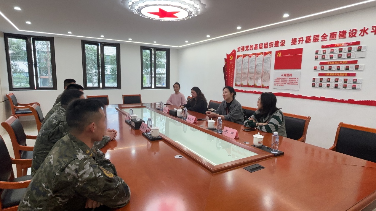 参观结束后,双方召开座谈会进行深入交流。会上,三大队教导员宋淼龙同志介绍了大队的基本情况、队伍建设及育人工作的特色做法;法学院院长宋晓燕分享了学院党建工作的经验成果和学院学科建设的发展现状。双方围绕育人工作中的重点难点问题展开热烈讨论,就如何发挥各自优势、盘活现有资源达成共识。未来,上海财经大学法学院与武警上海总队执勤第四支队十中队将建立常态化联建机制,重点围绕志愿服务、党课联学等方面开展深度合作,实现资源共享、优势互补、协同发展,共同谱写新时代军地党建联建新篇章。