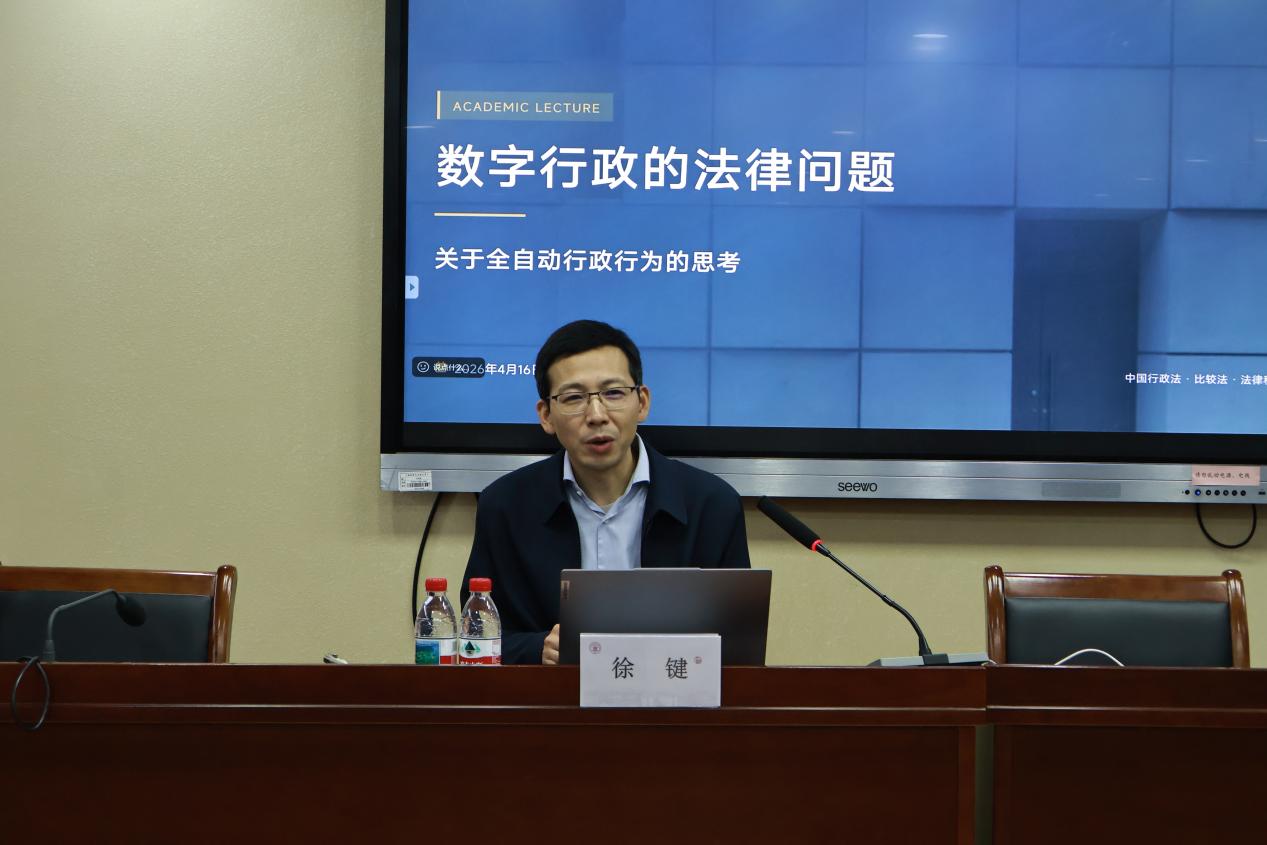 2026年4月16日晚,法学入门系列讲座第六讲在法学院116会议室举行。法学院徐键教授以《数字行政的理论问题》为题,为师生带来了一场兼具理论深度与现实关怀的学术报告。讲座由李德旺老师主持。