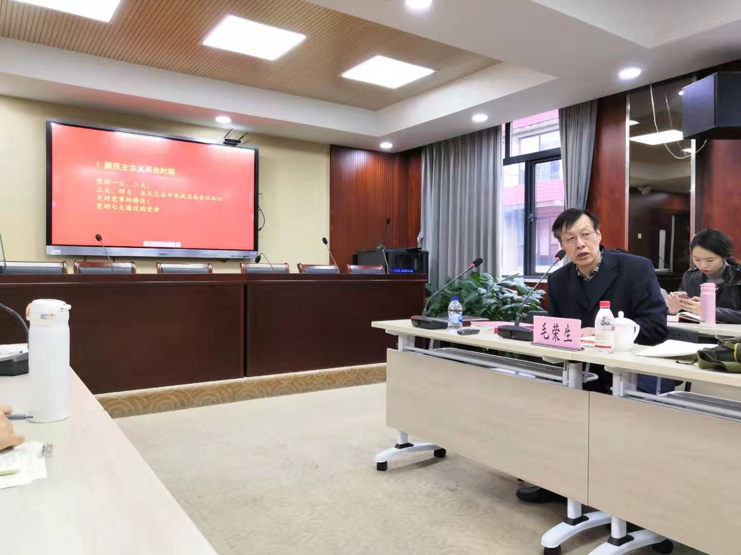紧接着,毛荣生老师为大家讲述了在改革开放新时期,党章建设重新恢复了正确道路,取得的一系列重大理论成就创新,先后确立了邓小平理论、“三个代表”重要思想、科学发展观作为全党工作的指导思想。尤其强调了党的十九大又确立了在十九大中确立的习近平新时代建设中国特色社会主义思想作为党的指导思想,并写入党章,。这是党章建设中的重大发展。
