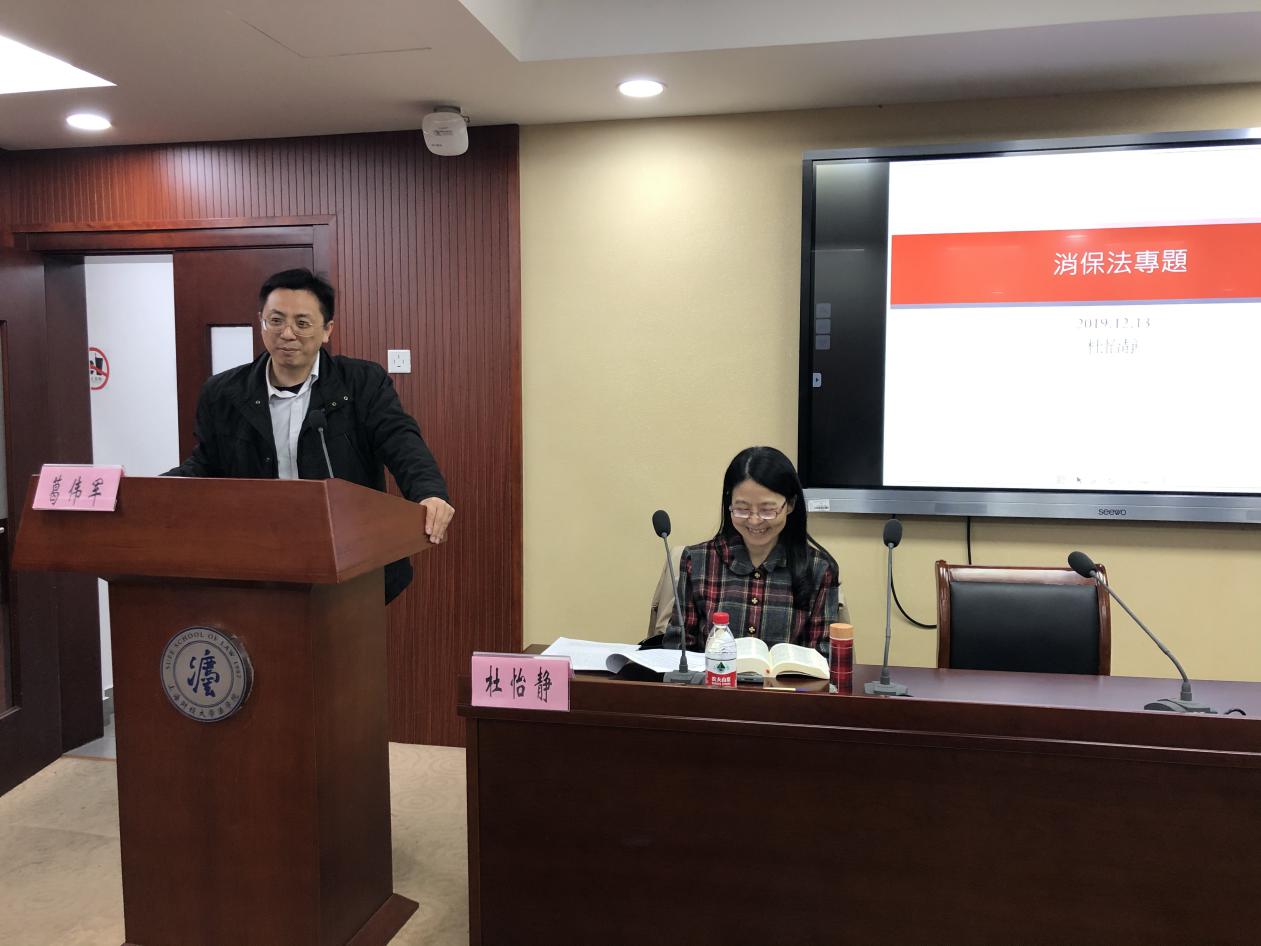 2019年12月13日晚18点30分,上海财经大学财经法律论坛第175讲于法学院116会议室举行。本次论坛由台北大学法律学院院长杜怡静教授担任主讲人,讲座的主题为“消费者保护的问题与发展”。上海财经大学法学院副院长葛伟军教授担任主持人。法律出版社法研工作室刘文科主任、中国人民大学法学院吴志诚助理教授、中南财经政法大学法学院陈大创老师、上海财经大学法学院袁波老师以及众多学生参加了本次论坛。