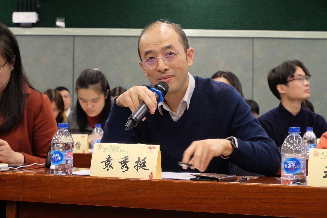 在与谈环节,袁秀挺教授针对胡荟集、黄荣楠、郭晨辉三位发言人所提到的广告屏蔽问题、短视频问题、“鸡尾酒疗法”、IPTV的法律属性等方面作出点评,通过理论分析和比较法的角度对上述问题提出自己的观点。