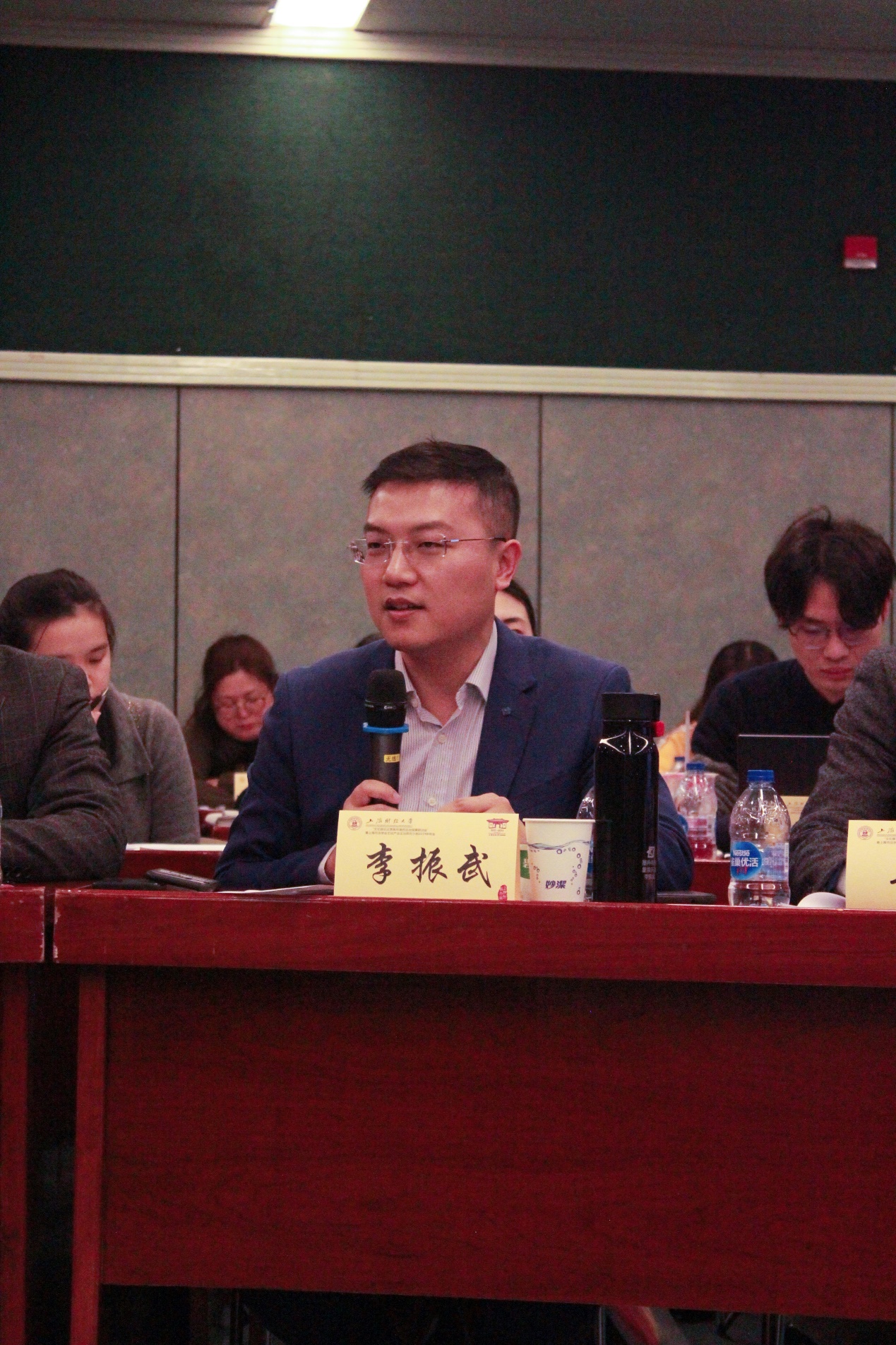 在谈人环节,刘文科主任首先对艺术品拍卖市场存在的问题发表了感想,提出应当区分工艺美术品和纯粹的艺术品和收藏品。随后谈了谈比较法对我国娱乐法和艺术法的借鉴意义。最后提出应当对艺术法、娱乐法所适用的法律关系作出区分。