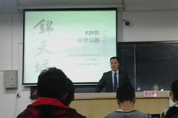 At 6:30 pm, April 16, 2015, the lecture themed “The Legal Problems and Risk Prevention for P2P” was given by Dr. Wu Weiming, a lawyer working with AllBright Law Offices, in Room 201, 2ed Teaching Building, Guoding Campus. Dr. Wu has profound theoretical basis and rich experience in practice. Students have learnt a lot from his lecture. The lecture was hosted by Song Xiaoyan, professor of SHUFE Law School and it lasted about two hours.